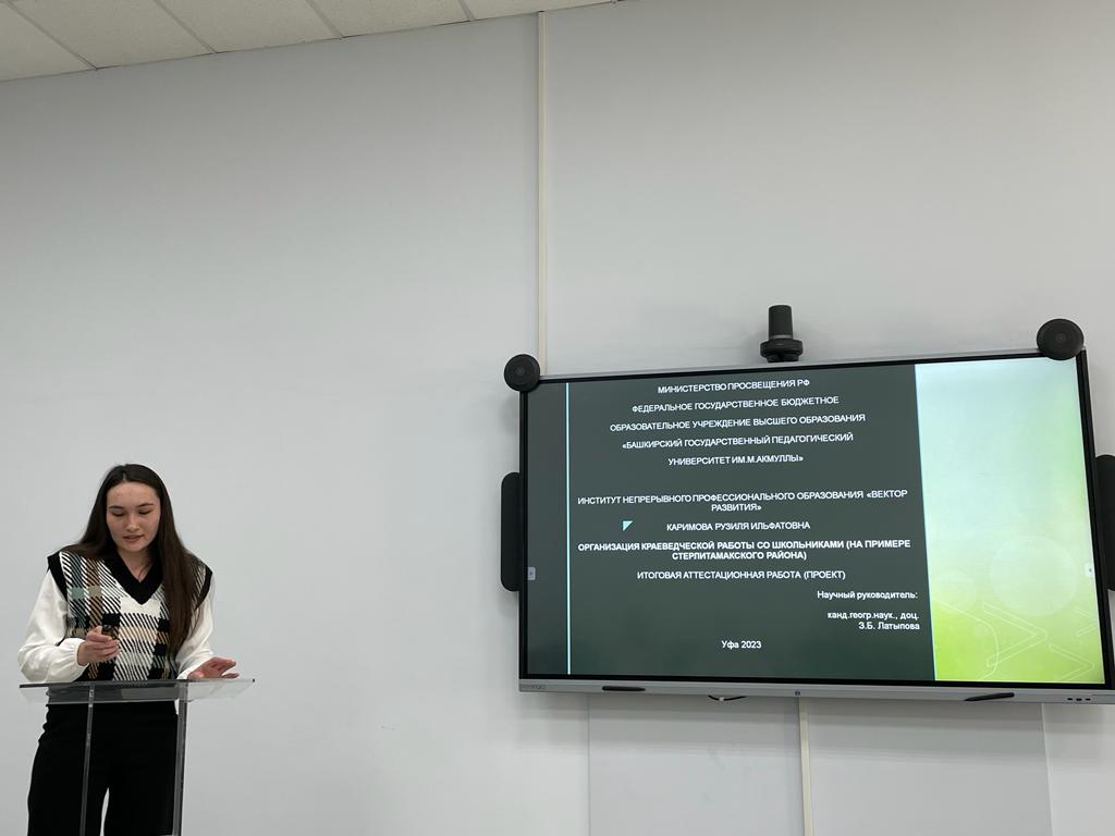 Прошла защита выпускных проектов слушателей курса переподготовки учителя географии (руководитель З.Б. Латыпова). Среди слушателей есть как учителя, имеющие большой стаж работы, так и студенты нашего факультета, обучающиеся по профилю «Экология и природопользование», которые после получения диплома об окончании вуза смогут работать учителями географии. Надеемся, что выпускные проекты будут продолжены на практике, а сами слушатели станут наставниками наших победителей олимпиад и будущих студентов ЕГФ.