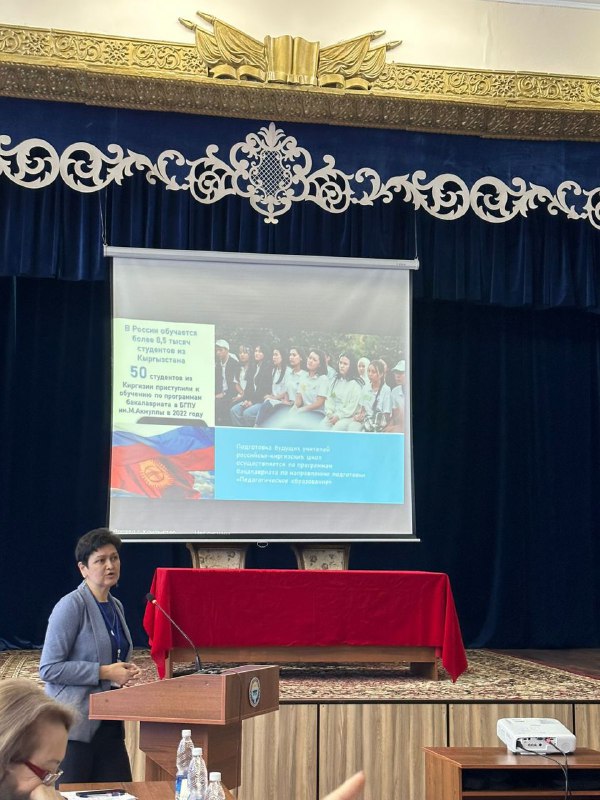 В Бишкеке 19 апреля состоялась Международная научно-практическая конференция «Устойчивое развитие горных регионов и зеленая экономика», с участием заместителя Председателя Кабинета Министров Кыргызской Республики Байсалова Эдиля Жолдубаевича, руководителей трех министерств, заместителя мэра Бишкека, представителей научного сообщества четырех стран - членов Евразийского экономического союза: Кыргызстана, Казахстана, России и Беларуси. В пленарном заседании конференции перед высокой аудиторией с докладом на тему «Российско-Кыргызское образовательное пространство: тенденции и перспективы» выступила заведующая кафедрой экологии, географии и природопользования Галия Гильманова. Во время конференции познакомились с профессором Саламатом Кулюмбековичем Аламановым – президентом Географического общества Кыргызской Республики, с коллегами из вузов стран - членов ЕАЭС. Много новых знакомств, планов, идей сотрудничества. Спасибо КНУ им.Ж.Баласагына за приглашение!