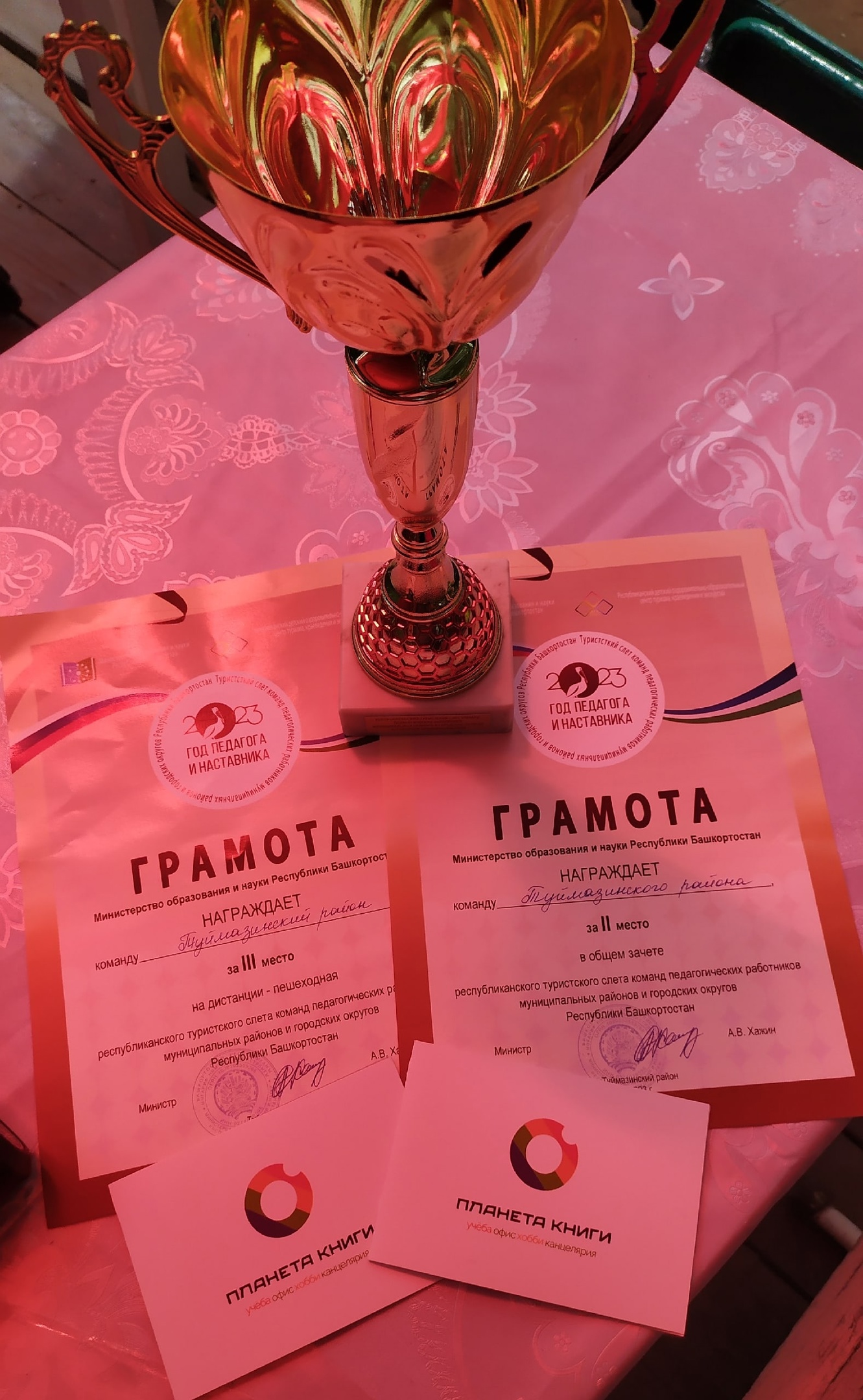 Членом команды победителей является Александр Шобухов - выпускник ЕГФ 2012 года, направление "Туризм". Команда Туймазинского района "Дети Йети" заняла II место в общем командном зачёте, уступив лишь педагогам из Уфы. Шафиков Александр (Центр туризма) - студент 3 курса ЕГФ направления "Туризм"; Мурыгин Александр Михайлович, начальник лагеря "Ровесник", тренер команды Туймазинского района по спортивным туристским дистанциям - выпускник ЕГФ (1992 год). В команде Дюртюлинского района выступала выпускница ЕГФ 2010 года по специальности "География и биология" Алеся Яхина. Главный судья соревнований - Азат Фаритович Байков, так же выпускник естественно-географического факультета.