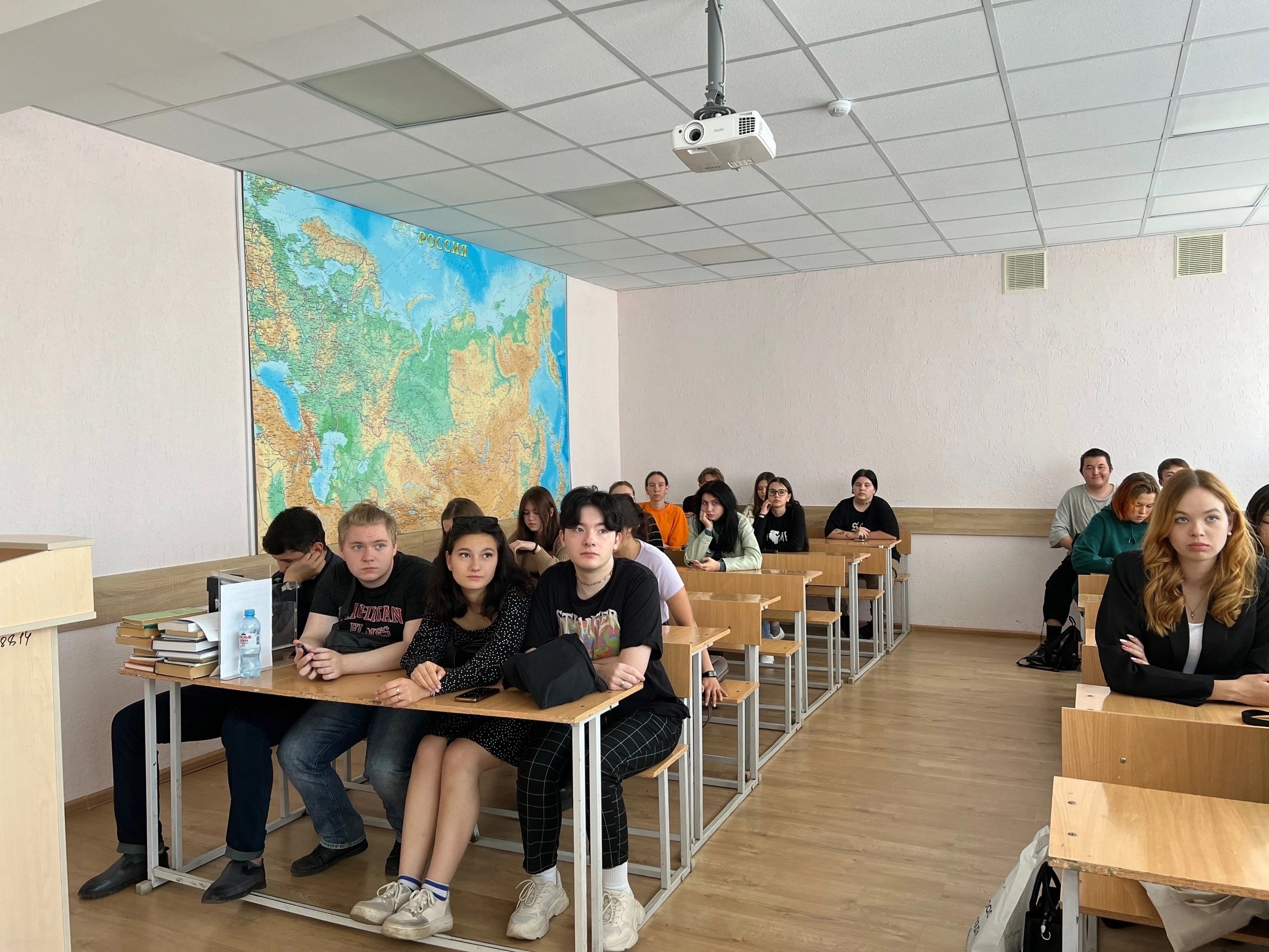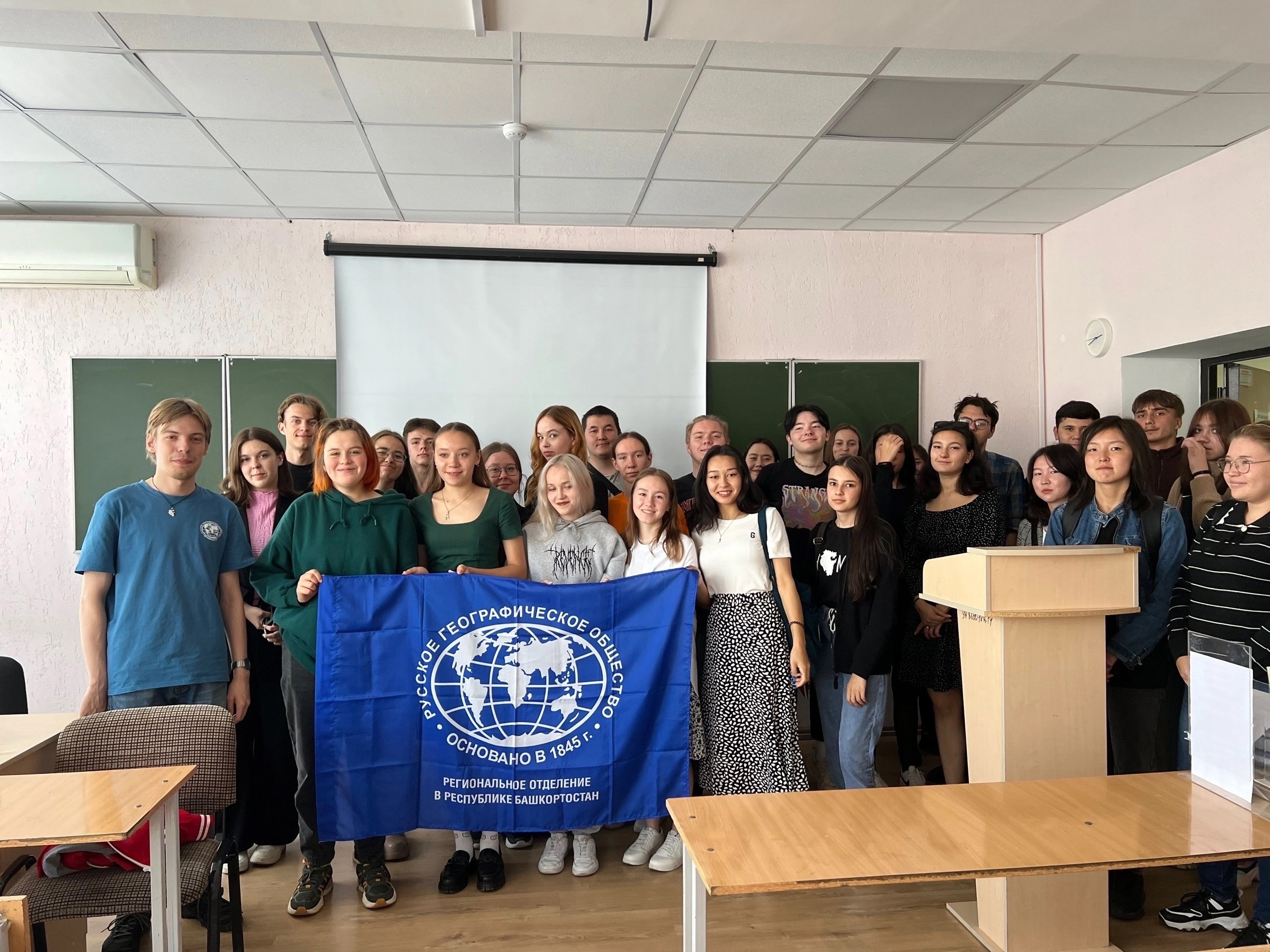 16 сентября состоялась встреча, где ведущий специалист Русского географического общества Данил Денисов провёл беседу  с первокурсниками ЕГФ о  деятельности и проектах РГО. После чего они посмотрели очень занимательный фильм про РГО. Ребятам хорошо запомнилась эта встреча, где они узнали много интересного для себя.