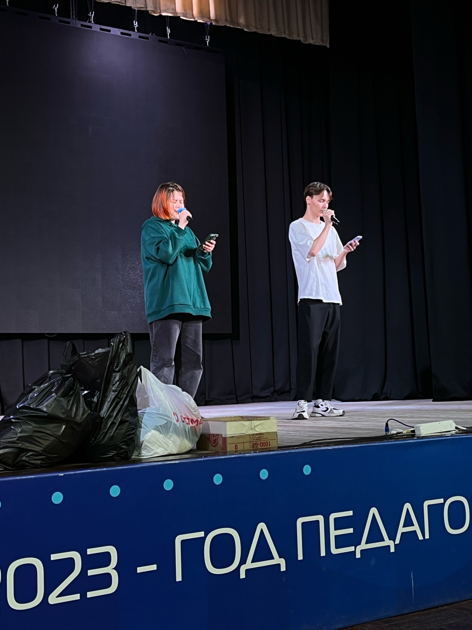 С технической стороны была проведена работа со светом, звуком, экраном..