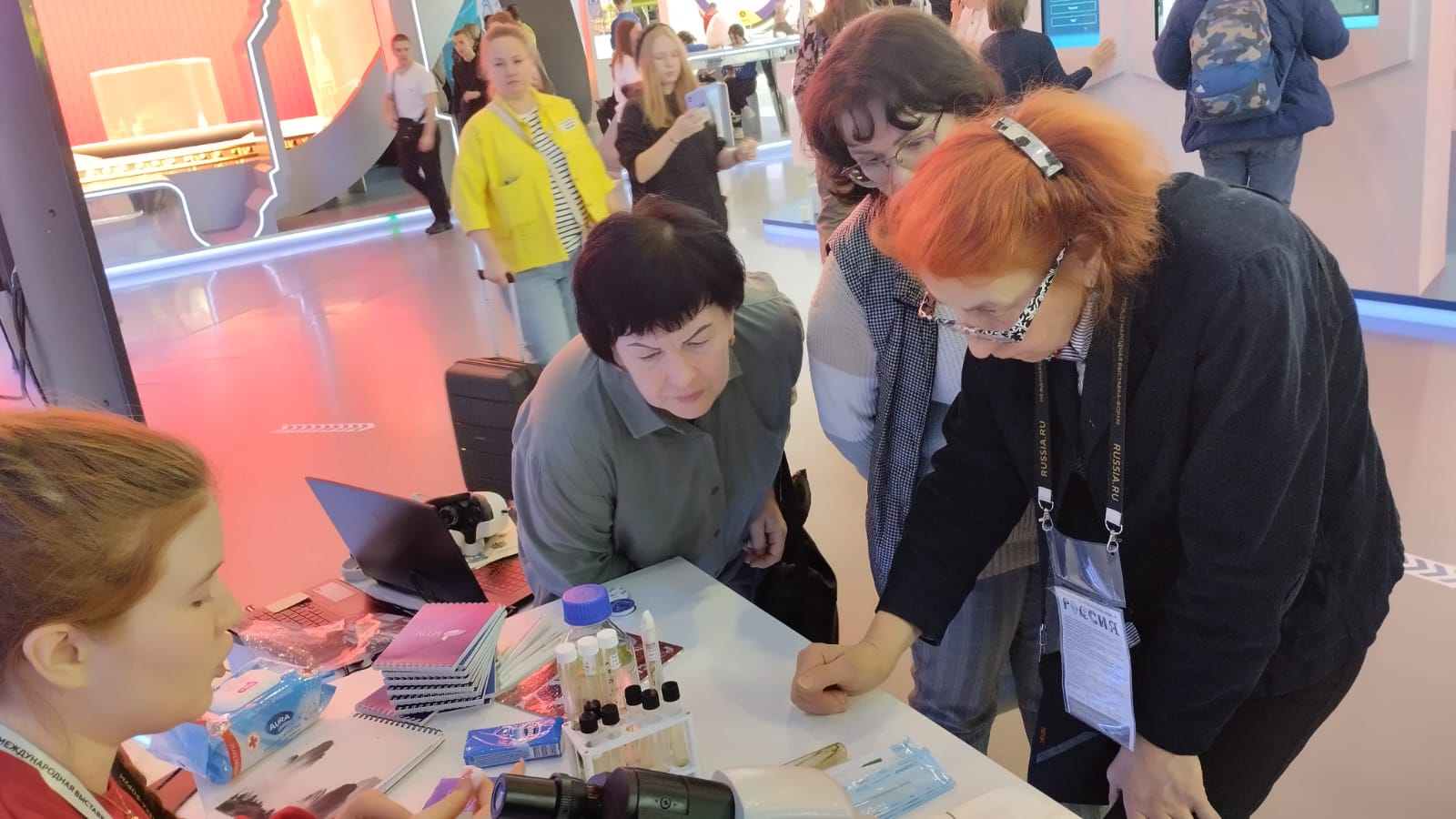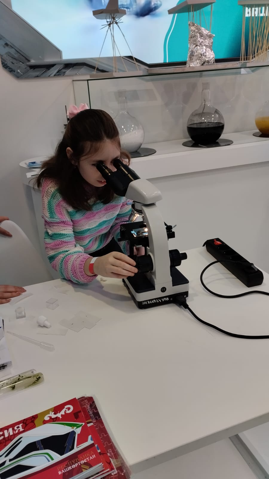 Наш университет представила студентка Естественно-географического факультета Муфазалова Альфия, и   преподаватель кафедры экологии, географии и природопользование Шугаипова Линара Равильевна. Альфия провела мастер класс "Водоросли цианобактерии для освоения космоса" и помогла гостям выставки самим приготовить образец привезенных водорослей и рассмотреть под микроскопом.  Активный интерес к данной теме проявили не только дети школьного возраста, но и взрослые гости ВДНХ.