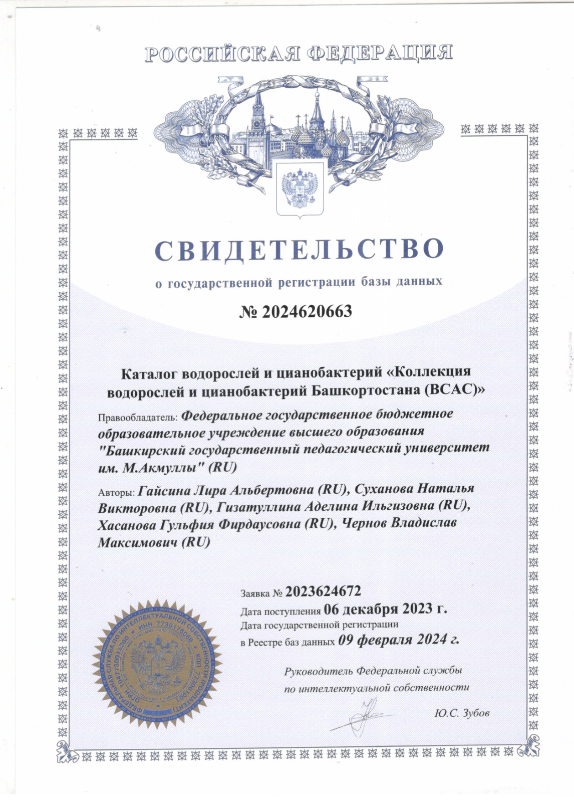 Альгологи БГПУ имени М.Акмуллы получили свидетельства на регистрацию баз данных