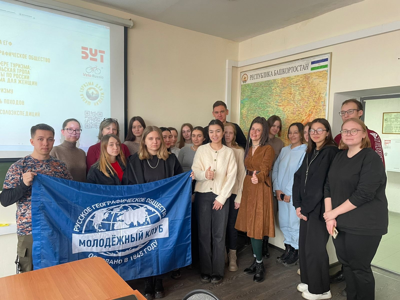 27 марта на ЕГФ, прошла встреча студентов с Ксенией Салазановой, активным членом Русского географического общества (РГО). Она рассказала об участии в экспедиции РГО в Арктику, о прошлогоднем путешествии на велосипеде по маршруту Екатеринбург-Оренбург длительностью в 21 день, поделилась фотографиями о путешествии пешком, на велосипеде и по воде, во время которой она сумела пройти расстояние в 440 км. В ходе своих путешествий, она посетила множество интересных мест, увидела достопримечательности и встретилась с другими любителями велотуризма в нашей стране.