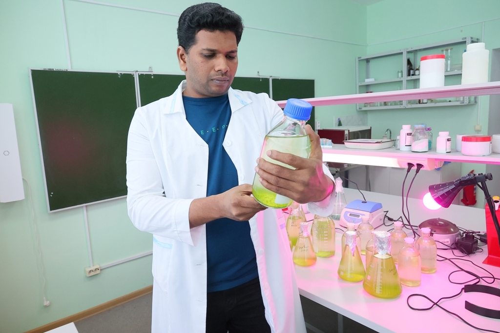 В БГПУ индиец подключился сразу к нескольким научным исследованиям и экспериментам. Например, вместе с коллегами производит суспензию водоросли Parahlorella kessleri по заказу стратегического партнера вуза — предприятия «Башинком», выпускающего биопрепараты.