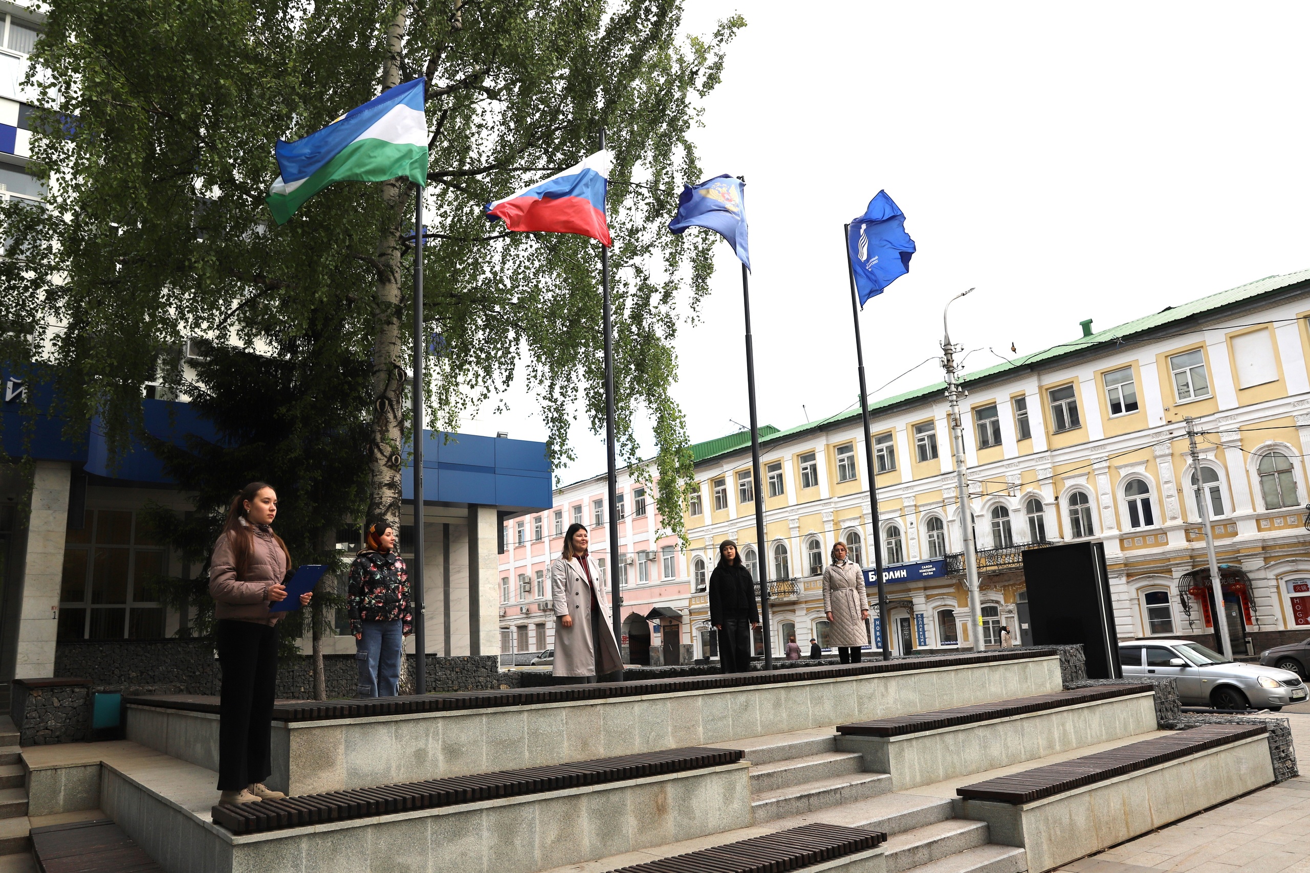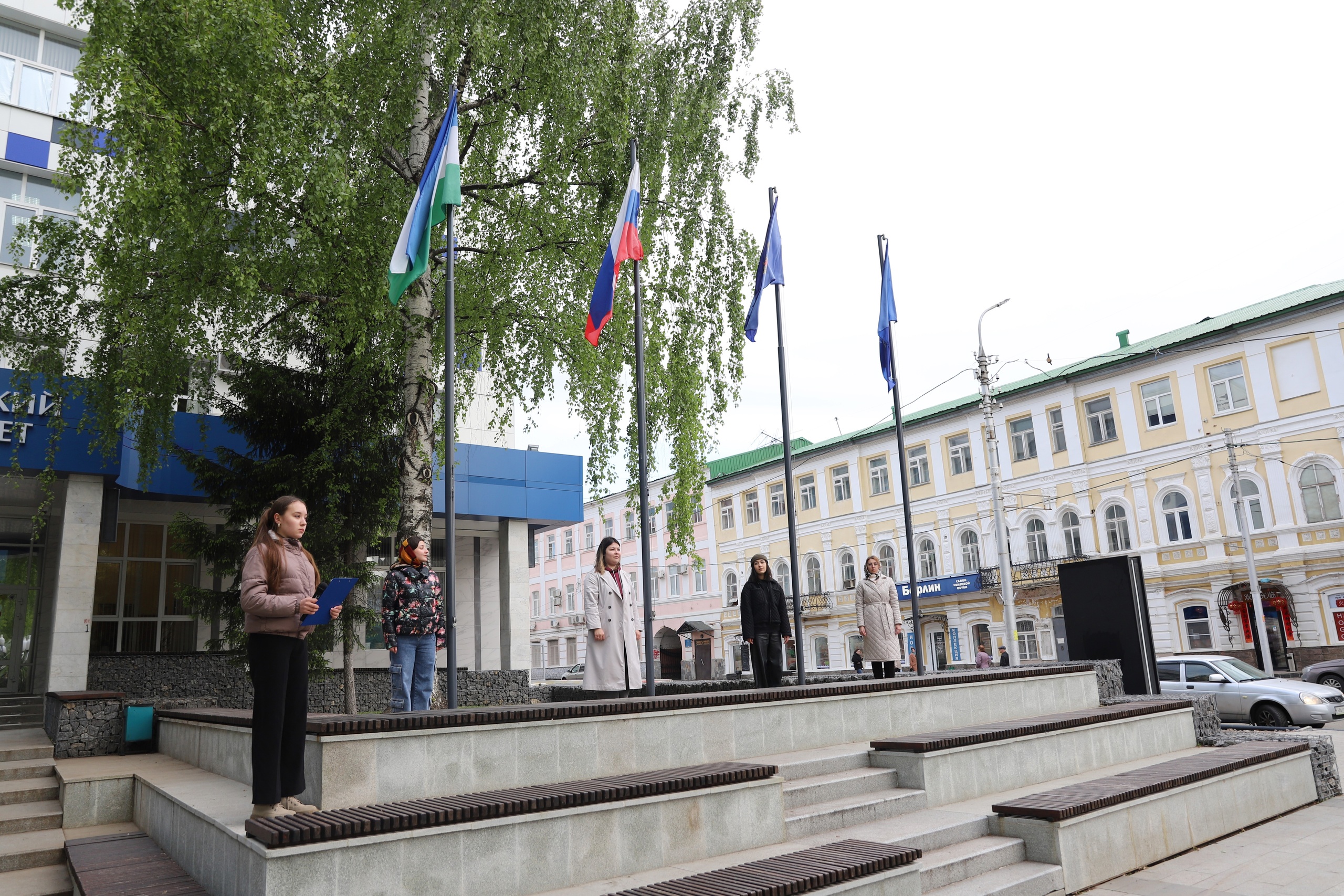 13 мая перед первым корпусом БГПУ имени М. Акмуллы состоялась еженедельная торжественная церемония поднятия Государственного флага Российской Федерации, флага Республики Башкортостан, Министерства просвещения Российской Федерации и Акмуллинского университета. В ней приняли участие студенты и преподаватели естественно-географического факультета Башгоспедуниверситета.
