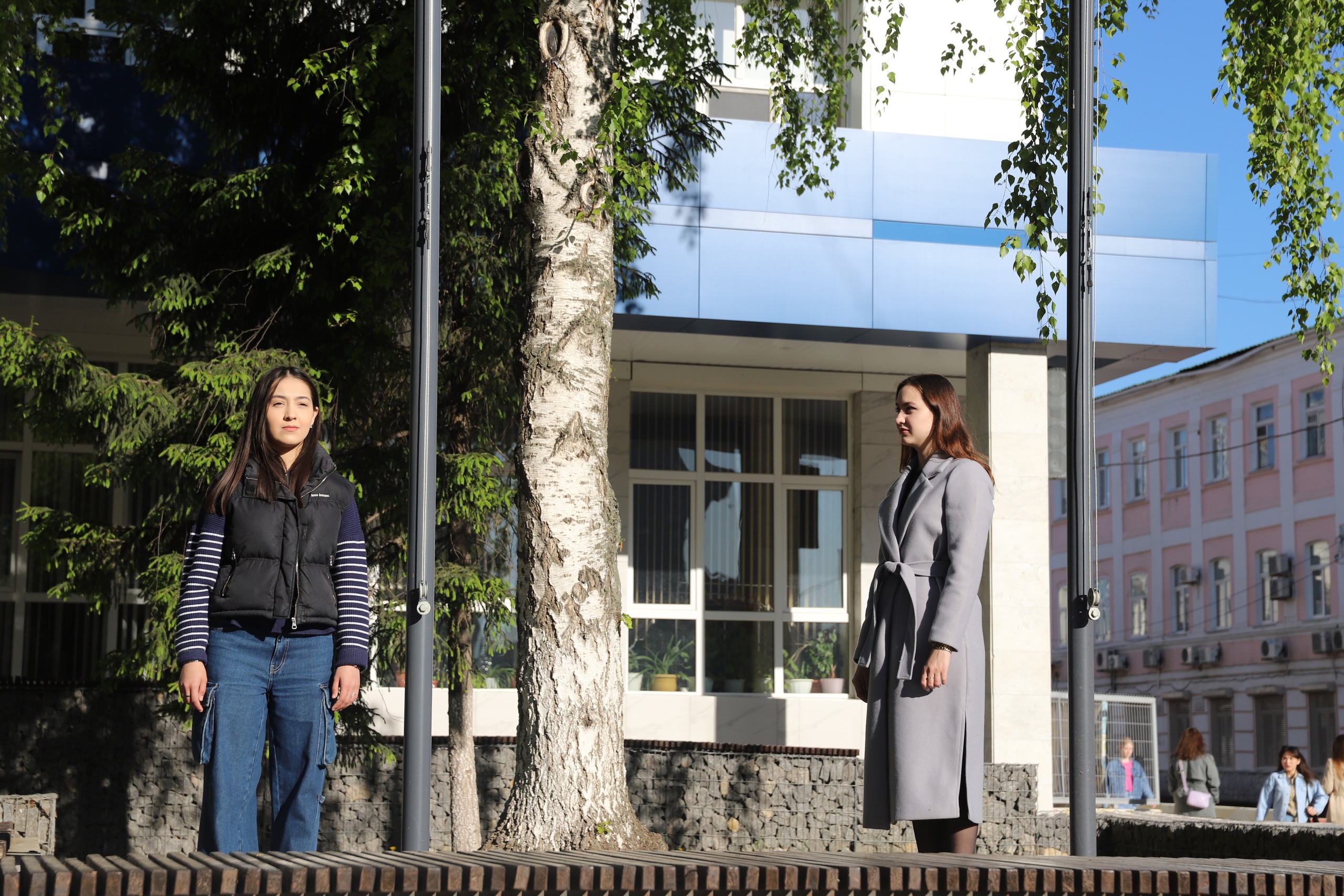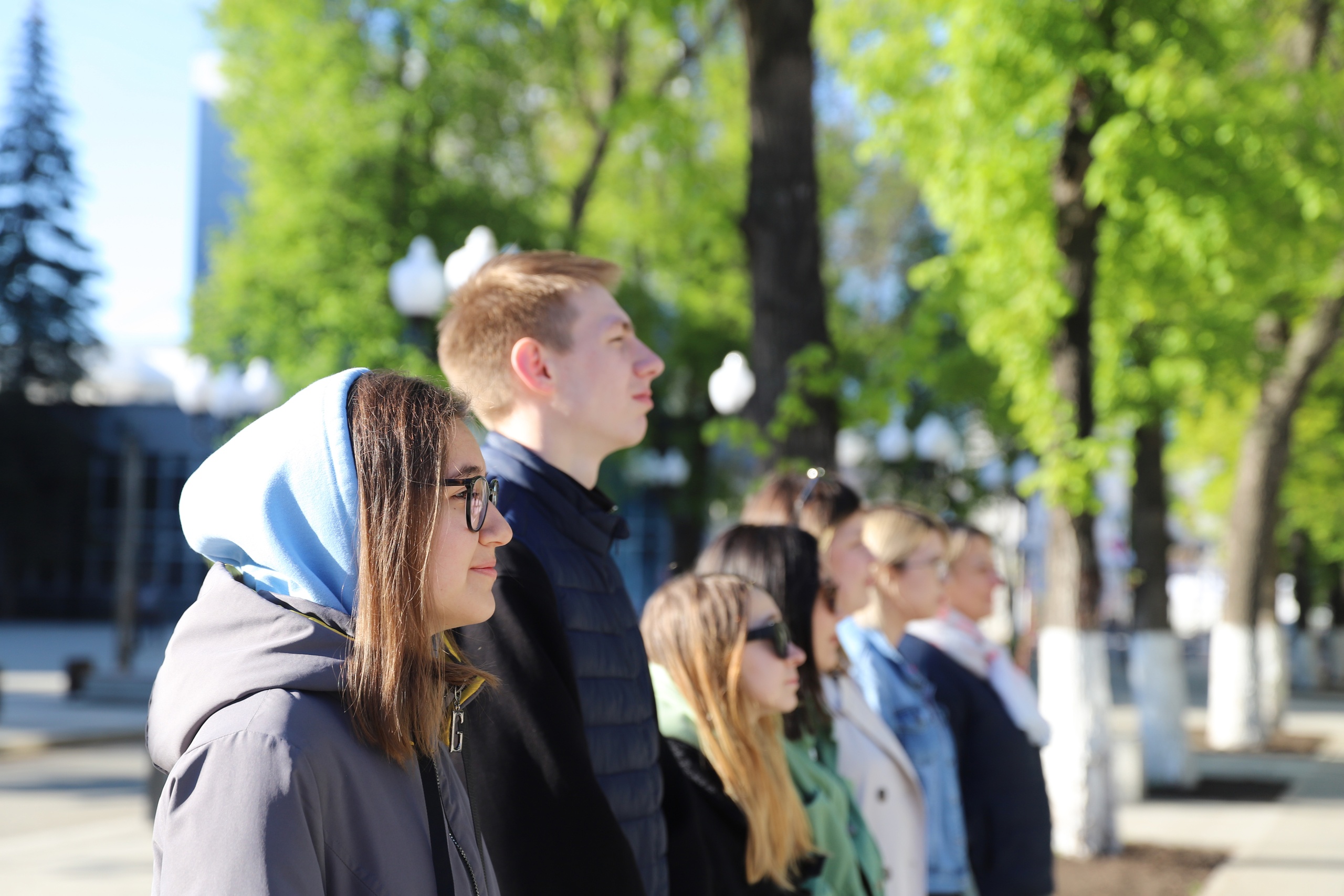 Сегодня почетное право поднять флаги было предоставлено лауреатам 1 степени вузовского песенного конкурса «Битва хоров»: