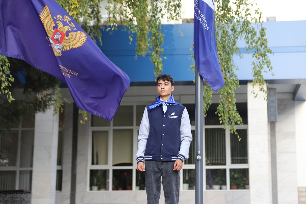 Почетное право поднять Государственный флаг России, флаги Республики Башкортостан, Министерства просвещения РФ и Акмуллинского университета  получили координатор Волонтерского центра ЕГФ Анна Семёнова, победитель предпринимательского акселератора Евразийского НОЦ «Новый импульс» Алина Торовина, победитель Акмуллинской олимпиады по русскому языку для граждан Киргизии Султан Медербеков и активист «Движения Первых» Амур Ахметов.