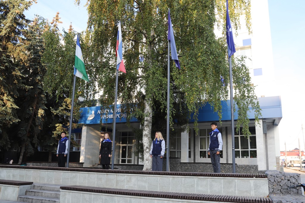 9 сентября в Акмуллинском университете состоялась еженедельная церемония поднятия флагов. В ней приняли участие студенты естественно-географического факультета.