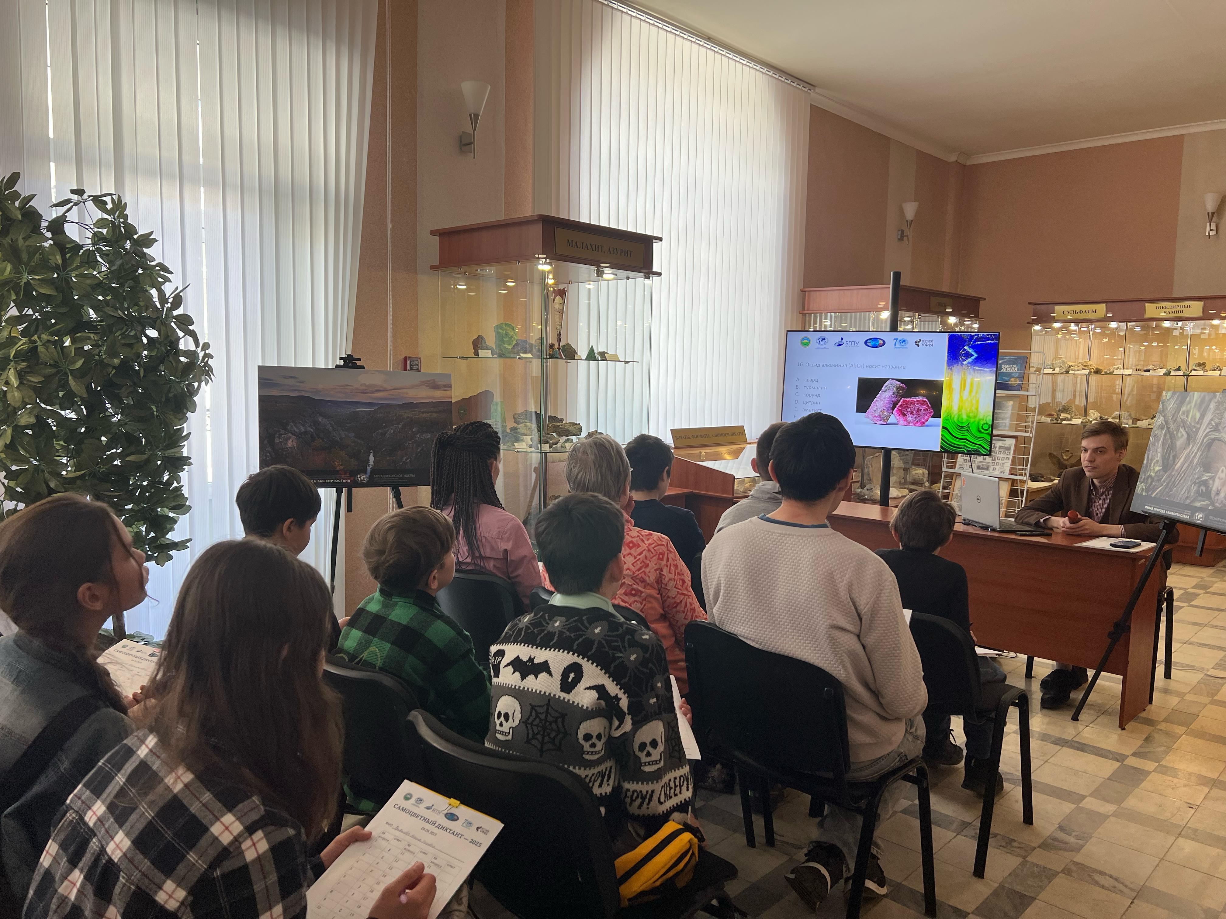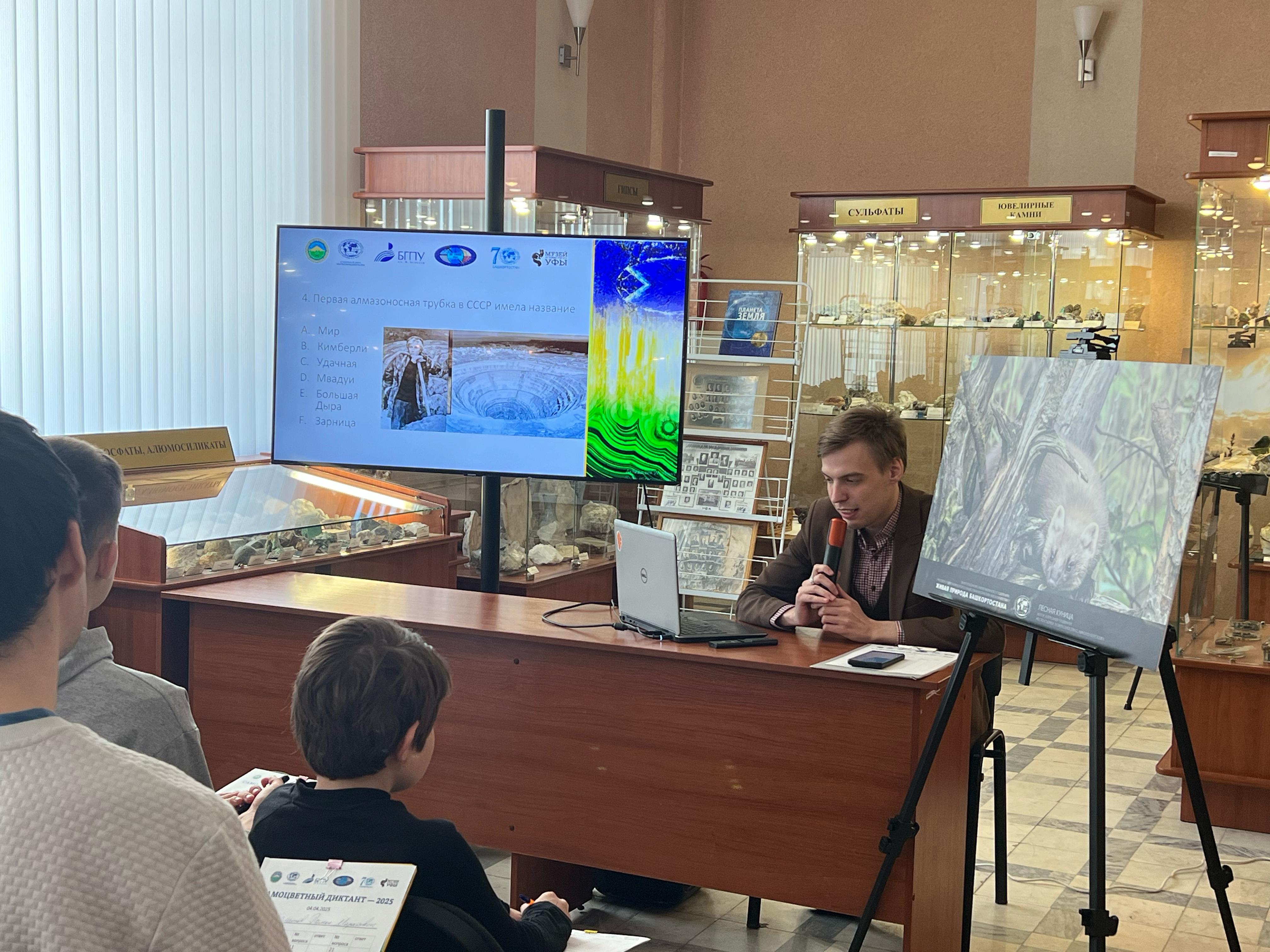 4 апреля 2025 г. в преддверии Дня геолога на площадке Геологического музея Республики Башкортостан (подразделение Музея истории города Уфы) студенты Естественно-географического факультета, педагоги и воспитанники Уфимского городского Дворца детского творчества им. В.М. Комарова написали "Самоцветный диктант - 2025".