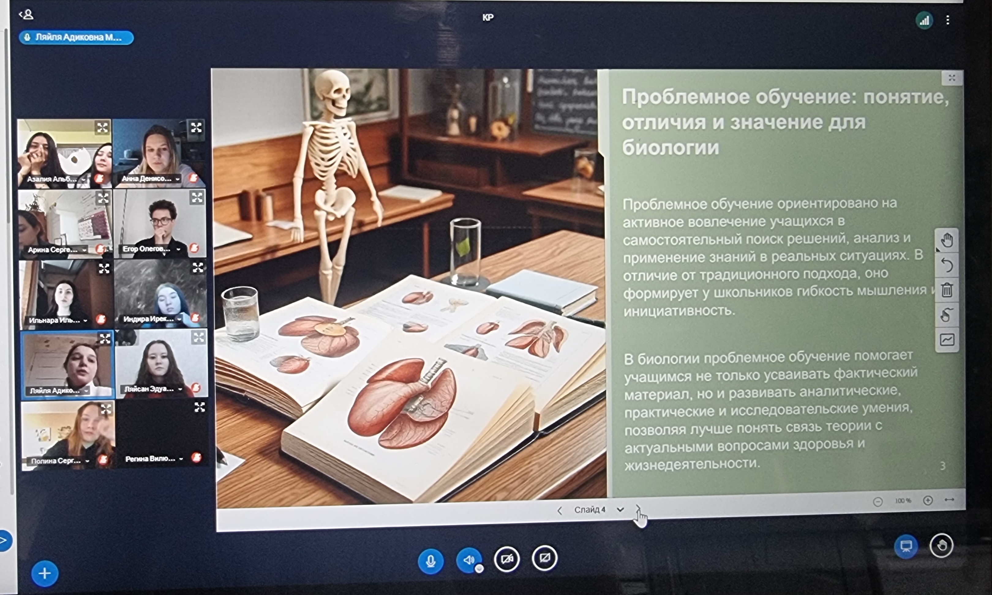 С 14 по 16 апреля 2025 г. на кафедре биоэкологии и биологического образования состоялся научно-методический семинар «Теоретические и прикладные аспекты развития современной биологической науки и образования». В работе семинара приняли участие студенты 3 и 4 курсов направления Педагогическое образование, обучающихся по профилям «География и биология», «Биология и химия». Будущие педагоги выступили с докладами и обсудили актуальные вопросы касающиеся педагогических условий подготовки школьников к ГИА, возможности и проблемы изучения живых организмов на уроках зоологии; организации работы учащихся при инклюзивном обучении, искусственный интеллект в образовательном процессе и т.д. Студентов волновали вопросы связанные с материально-техническим оснащением школ г. Уфы, использованием учебников нового поколения и их распространенность в школах Республики Башкортостан. Модератором выступила доцент кафедры БиБО Лилия Мунировна Сафиуллина. По результатам выступлений отмечены лучшие доклады, по которым будут готовится публикации в журнал Вестник Башкирского государственного педагогического университета им. М. Акмуллы.
