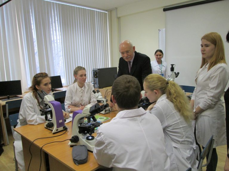 Рустэм Закиевич не только ознакомился с исследованиями школьников и студентов, но и посмотрел под микроскопом штамм цианобактерии Nostoc перспективного тест-организма.