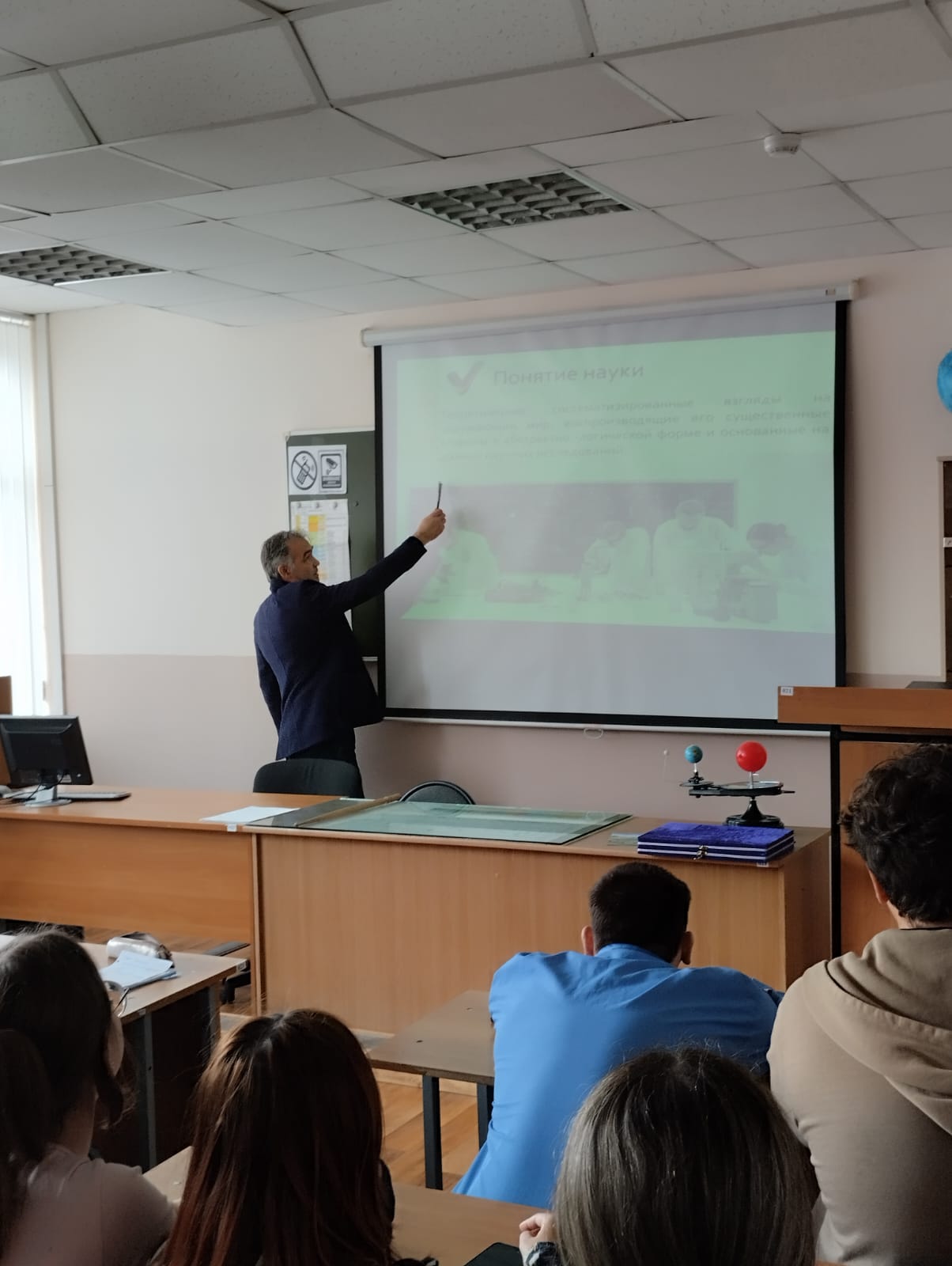 11 сентября на Естественно-географическом факультете прошел научный  семинар для студентов 1 курса. Главным спикером на семинаре был доктор биологических наук, профессор Саттаров Венер Нуруллович, с выступлением на тему: "Роль науки и образования в жизни человека». Венер Нуруллович рассказал об истории становления науки, не только в России, но и в мире, а также о базовых задачах науки, и главных достижениях. Студенты задавали вопросы, вели активный диалог со спикером.