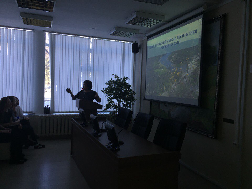 В этот же день для участников "Экологических суббот", которыми стали 109 студентов и школьников г. Уфы  с "золотой" лекцией на тему "Экологическая основа Республики Башкортостан" выступила кандидат географических наук, доцент кафедры географии, землеустройства и кадастры Закира Бадретдиновна Латыпова, а также была проведена экскурсия по лабораториям Естественно-географического факультета.