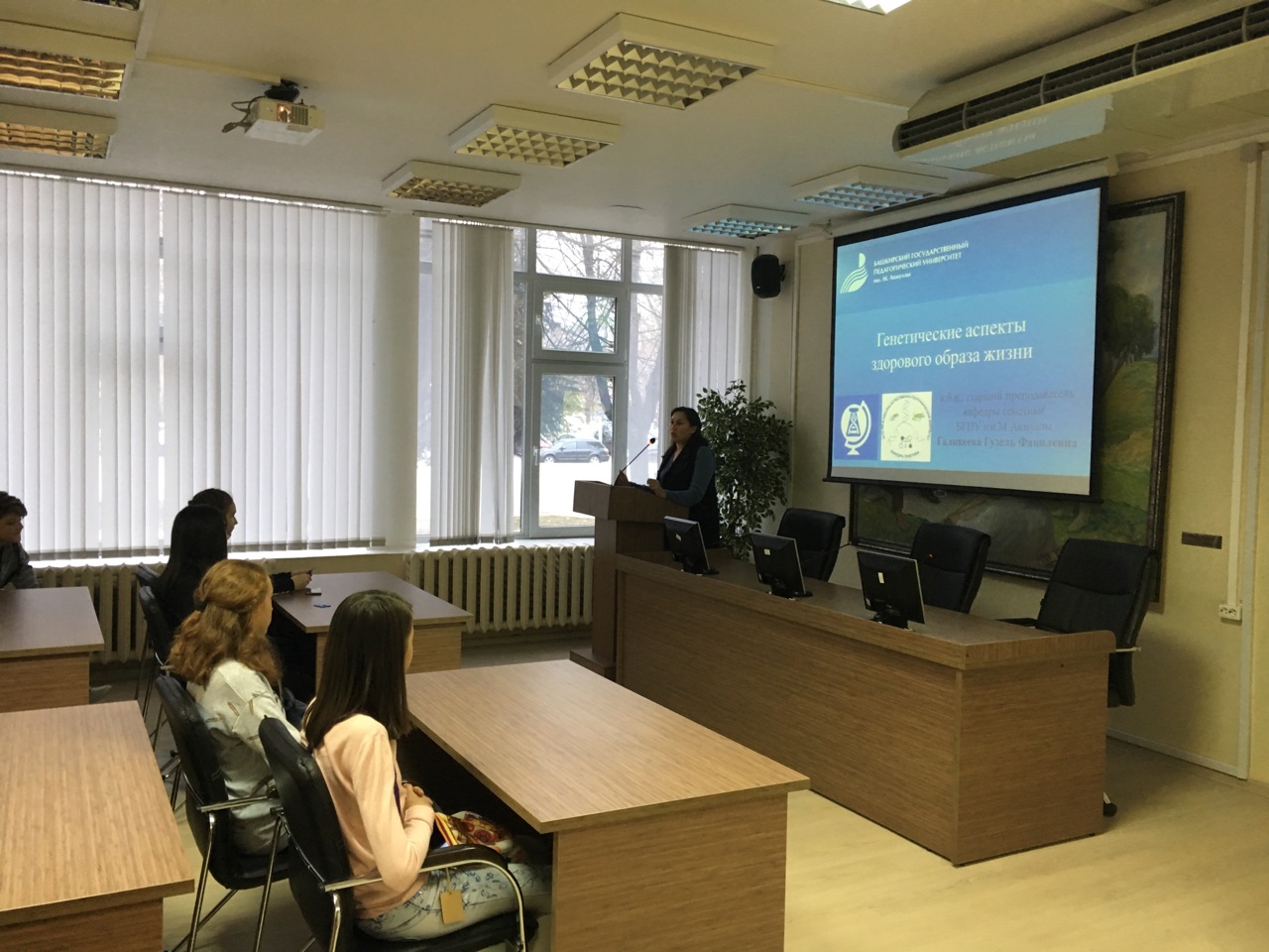 17 ноября на базе главного читального зала библиотеки БГПУ им. М.Акмуллы прошла "Генетическая суббота" в рамках университетского проекта "Экологические субботы". Школьники и преподаватели города Уфы прослушали познавательную лекцию доцента кафедры генетики, к.б.н. Гузель Фанилевны Галикеевой "Генетические аспекты здорового образа жизни". Затем ребята посоревновались в решении кроссворда "Основы генетики",  подготовленного студентами естественно-географического факультета. В соревновании победила команда "Биологи" в составе Резвановой Сабины, Мухамедьянова Алмаза и Прохорова Валерия. Поздравляем победителей!