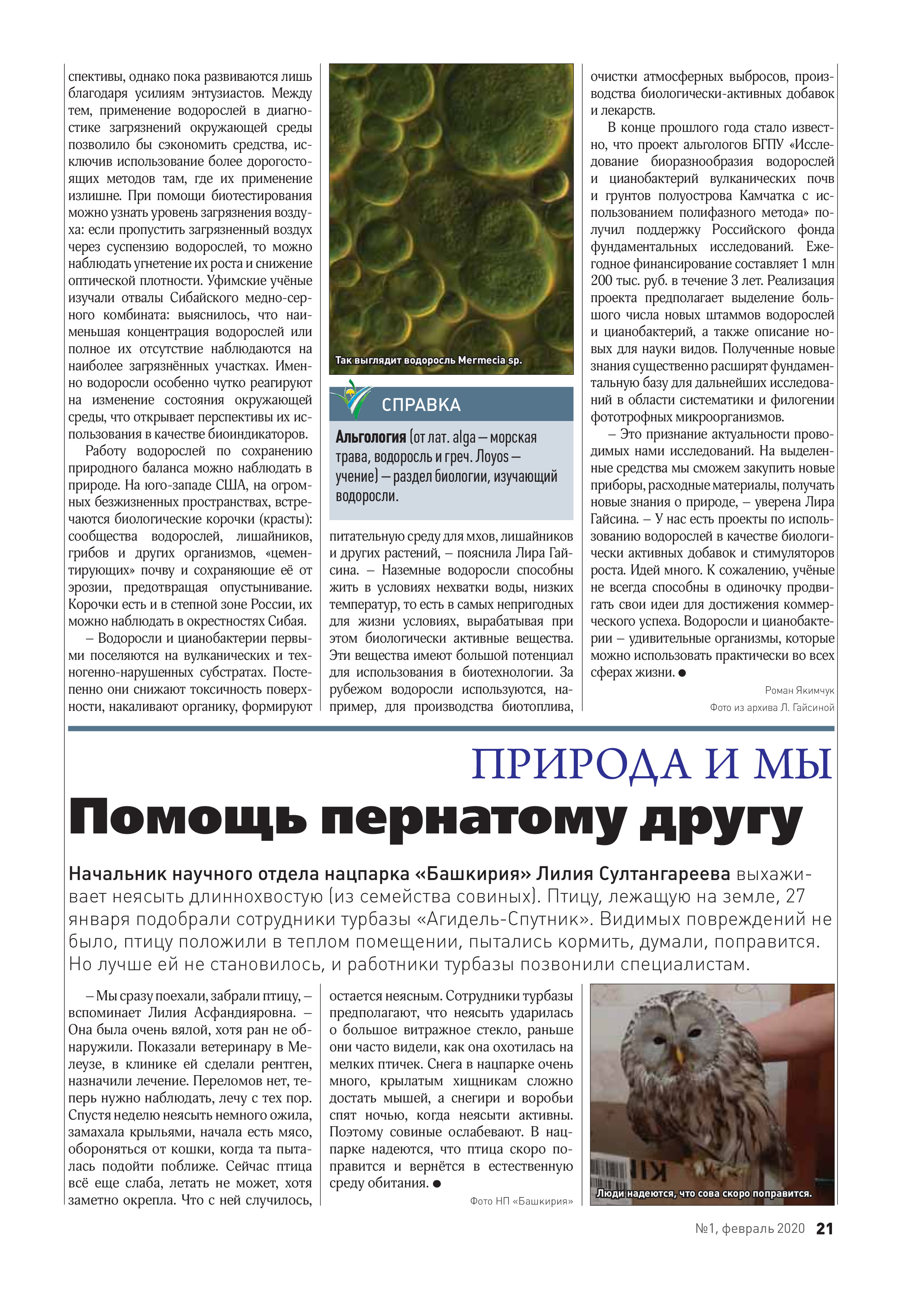 Публикация об альгологах БГПУ в журнале "Табигат" Министерства природопользования и экологии РБ