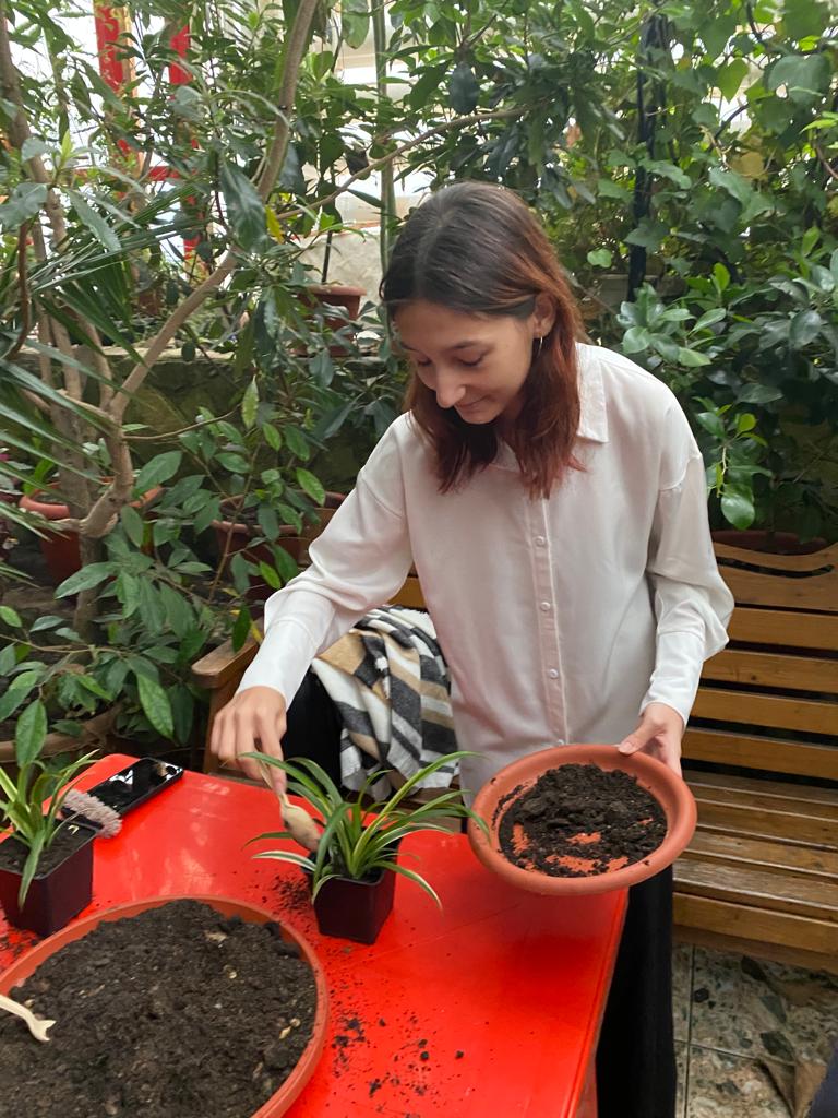 19 декабря в рамках проекта «Разработка и апробация дополнительной образовательной программы «Садовник» с применением инновационных технологий обучения и реабилитации для детей с синдромом Дауна», победителя конкурса 2022 года Фонда президентских грантов,  заведующей кафедрой биоэкологии и биологического образования Натальей Сухановой организована экскурсия участников проекта в оранжерею Южно-Уральского ботанического сада-института. Солнечные садовники совместно со школьниками-волонтёрами и студентами естественно-географического факультета познакомились с экзотическими тропическими и субтропическими растениями, привезенными из разных уголков земного шара. Детям очень понравились огромные пальмы и банановые растения. После экскурсии детям провели мастер-класс по посадке комнатных растений. Под руководством специалистов обучающиеся составили декоративные композиции с соблюдением всех правил комнатного цветоводства. После проведенного занятия учащиеся забрали с собой горшочки с растениями с целью озеленения школьных кабинетов.