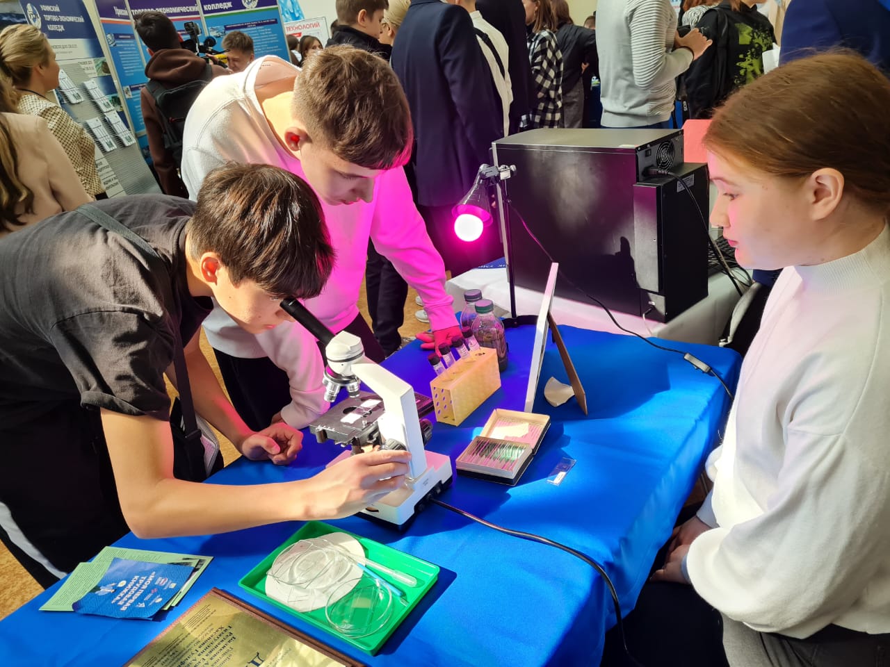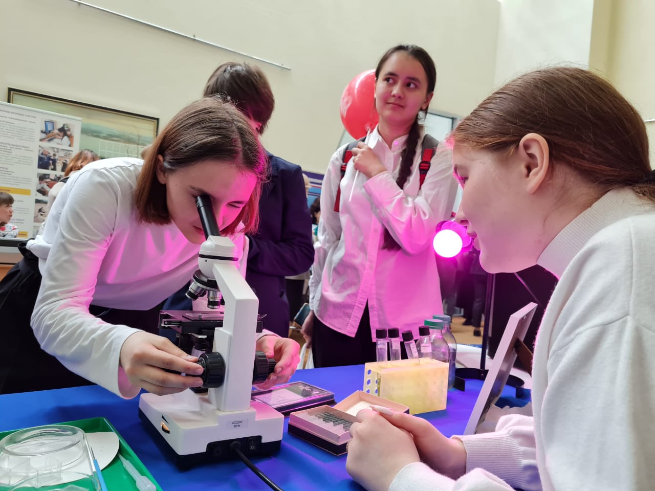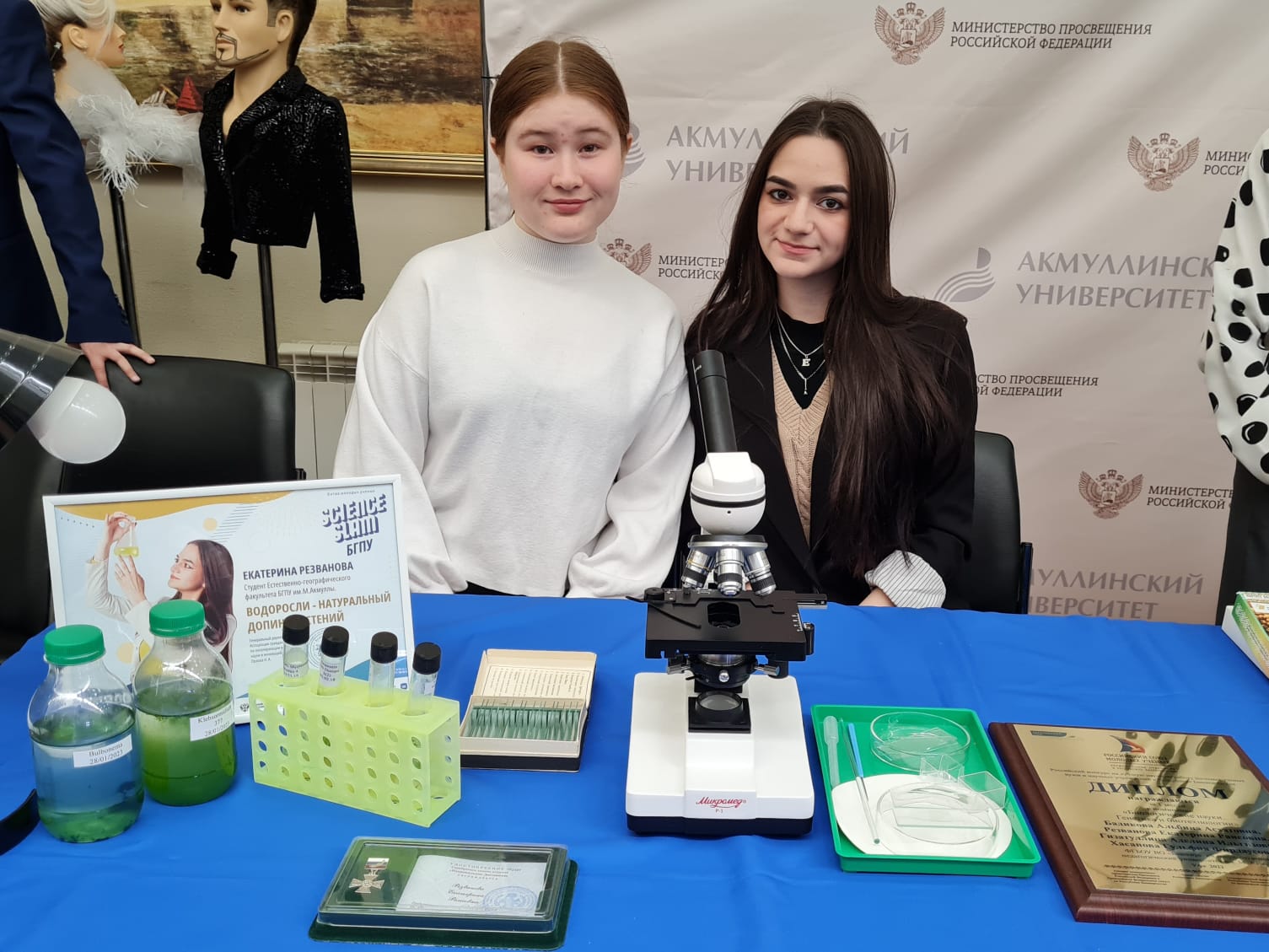 На стенде естественно-географического факультета БГПУ им. М.Акмуллы всем участникам фестиваля была предоставлена возможность окунуться в работу по професси Биолог. Школьники могли самостоятельно настроить микроскоп, чтобы рассмотреть постоянные препараты по ботанике, зоологии и анатомии, или же сделать свой собственный временный препарат из суспензии зелёных микроводорослей, изучаемых в одной из  лабораторий факультета.