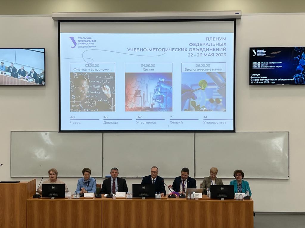 С 22 по 26 мая состоялся объединенный пленум Федеральных учебно-методических объединений в сфере высшего образования по направлениям 03.00.00 «Физика и астрономия», 04.00.00 «Химия» и  06.00.00 «Биологические науки». Он прошел в Институте естественных наук и математики Уральского федерального университета имени первого Президента России Б.Н.Ельцина (г. Екатеринбург).