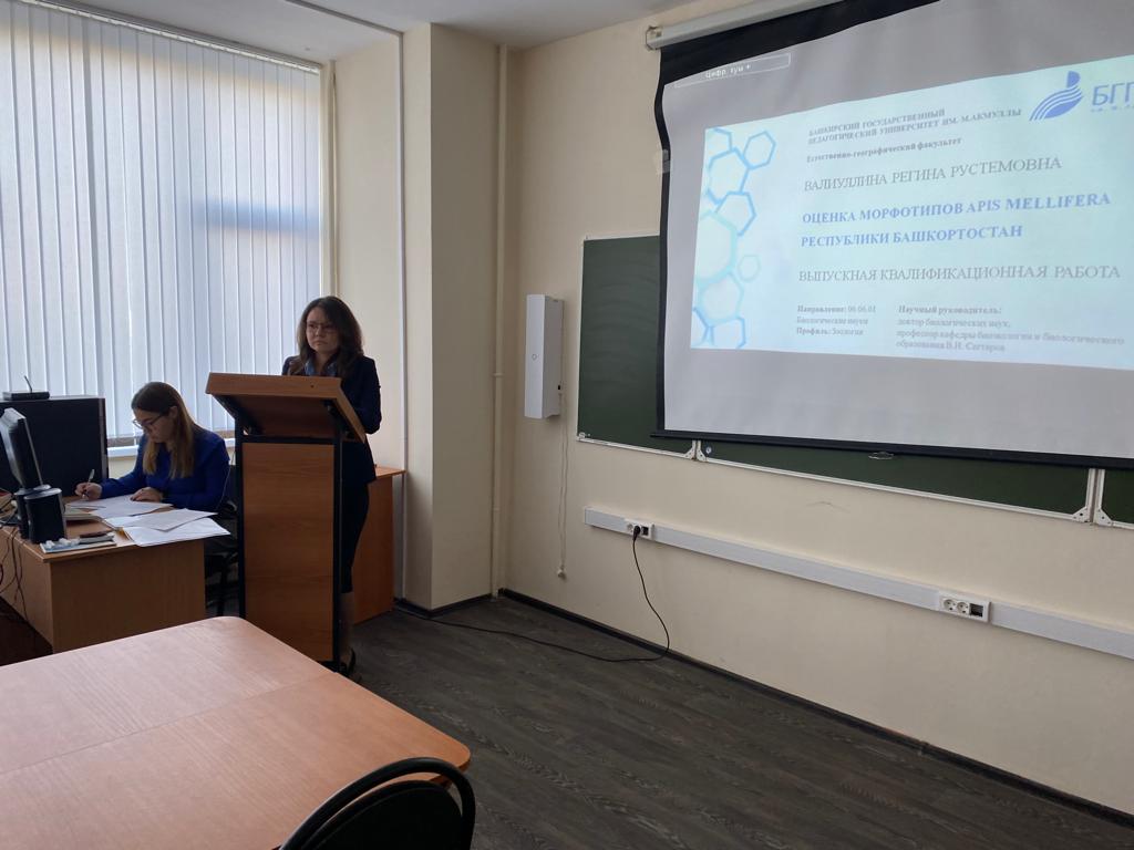 15 сентября 2023 г. прошла защита выпускной квалификационной работы Регины Валиуллиной на тему " Оценка морфотипов Apis mellifera Республики Башкортостан" по направлению 06.06.01 Биологические науки профиль Зоология.