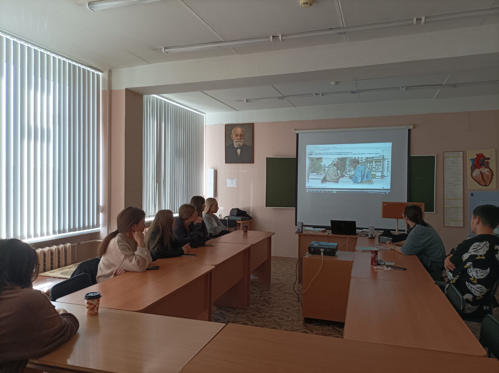 Студенты посмотрели и обсудили рекомендованные видеоролики, которые призваны помощь осмыслению учительской деятельности как проявления служения стране и людям; развитию представлений обучающихся о героизме учителей, об учителях как посредниках между традициями и инновациями; формированию уважительного отношения к труду педагогов.
