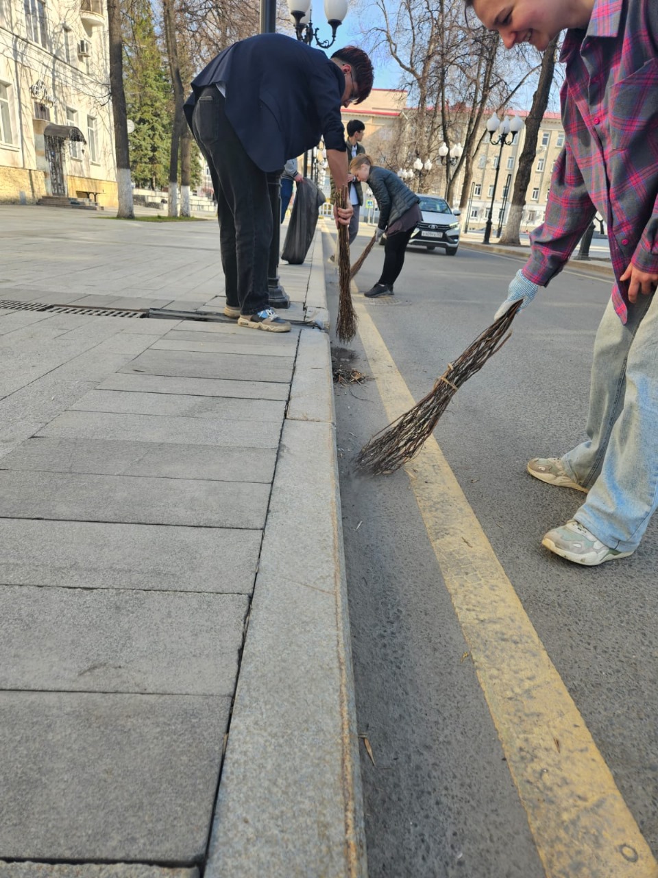 19 апреля 2025г, в целях благоустройства и поддержания чистоты и порядка территории, прилегающие к зданиям и сооружениям университета, студенты и преподаватели естественно-географического факультета приняли участие в общегородском субботнике.