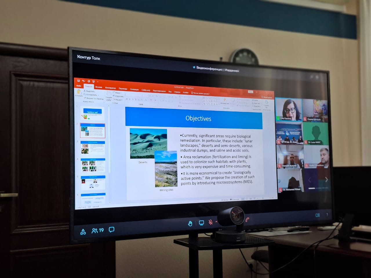 Заведующий кафедрой биоэкологии и биологического образования Наталья Суханова рассказала о возможных направлениях международного сотрудничества по проведению прикладных исследований в области альгологии, заведующий научно-исследовательской лабораторией молекулярной систематики фототрофных микроорганизмов им. Л.С.Хайбуллиной Лира Гайсина представила результаты разработок по созданию «искусственных» почв и их использованию в борьбе с засухой и в сельскохозяйственном освоении безжизненных пространств, заведующий научной лабораторией «Биотехнология живых систем» Эльза Халитова представила вниманию научного сообщества концентрат для предварительной инокуляции семян и ростостимуляции растений при условии засухи на основе биополимера и бактерий рода Streptomyces sp. и Pseudomonas fluorescens. В ходе научной и деловой дискуссии обе стороны определили точки возможного взаимодействия в части проведения совместных полевых испытаний полученных  учеными БГПУ им. М. Акмуллы биопрепаратов для сельского хозяйства в засушливых регионах, подачи совместных заявок на  гранты, написания совместных научных статей.