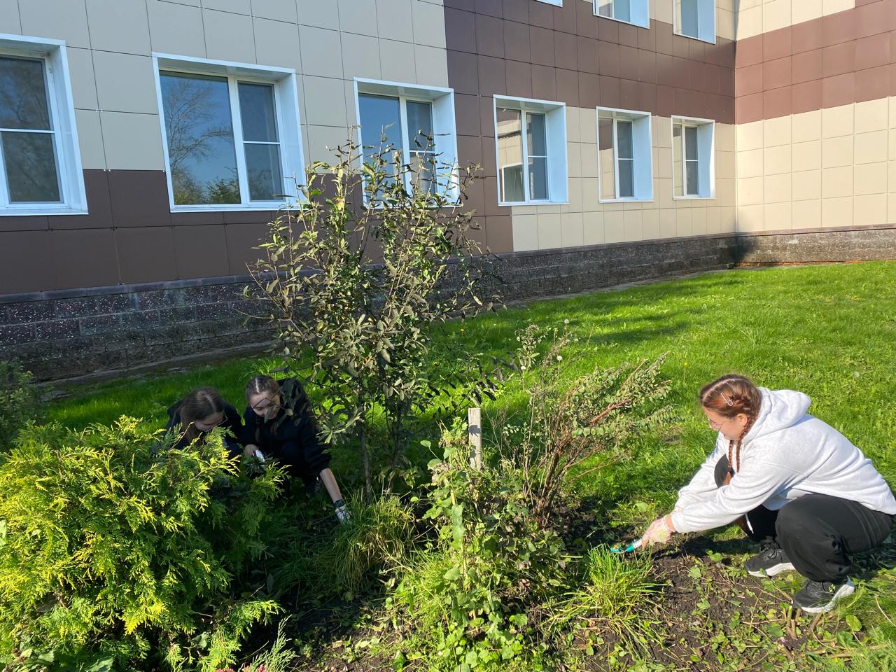 Студенты 2 и 3 курса направления "Биология" профиль "Биоэкология" в рамках учебной практики под руководством заведующей кафедры БиБО Натальи Сухановой и доцента кафедры Тагира Кабирова провели работы по уходу за плодовыми деревьями и уборку территории от листвы и падалицы яблок. Студенты спилили высохшие и пораженные паразитическими грибами ветви растений, обработали пораженные участки  фунгицидами, побелили стволы деревьев. Провели уходные работы в декоративных клумбах. Кроме того, в рамках программы практик выполнили несколько геоботанических описаний, собрали гербарий растений, отобрали пробы хвои ели и листьев березы повислой для мониторинговых исследований загрязнения воздуха для использования их в качестве фонового контроля.