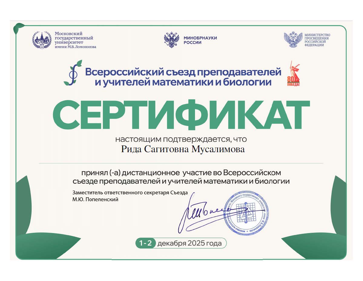 Мусалимова Р.С. приняла участие во Всероссийском съезде преподавателей и учителей математики и биологии
