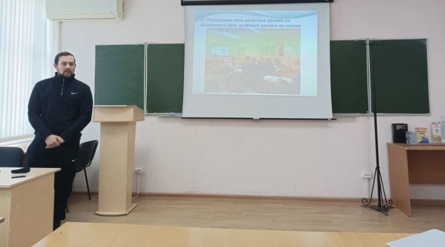 Во время практики студенты провели уроки и внеклассные мероприятия по биологии, географии, химии. В рамках практики студенты разработали конспекты и технологические карты уроков, внеклассных мероприятий, посещали и анализировали уроки опытных учителей, проводили самоанализ своих уроков, провели профориентационную работу со старшеклассниками.