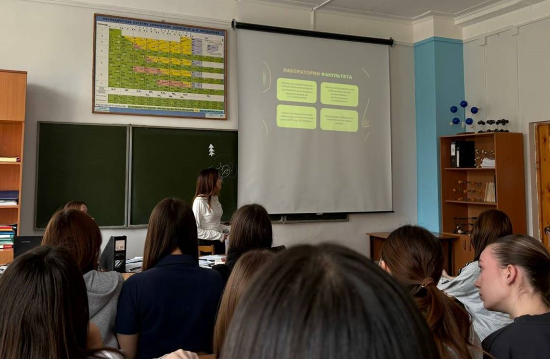 В рамках педагогической практики студенты 4-5 курсов, обучающиеся по направлению 44.03.05 Педагогическое образование (с двумя профилями подготовки) направленность (профиль) «География и биология» и «Биология и химия» провели в базах практики профориентационные мероприятия. Мероприятия проходили в форме беседы, на которых студенты-практиканты ознакомили старшеклассников с вузом, факультетом, направлениями подготовки, особенностями обучения, и отвечали на вопросы школьников. Кроме того, были организованы ряд посещений факультета и лабораторий.