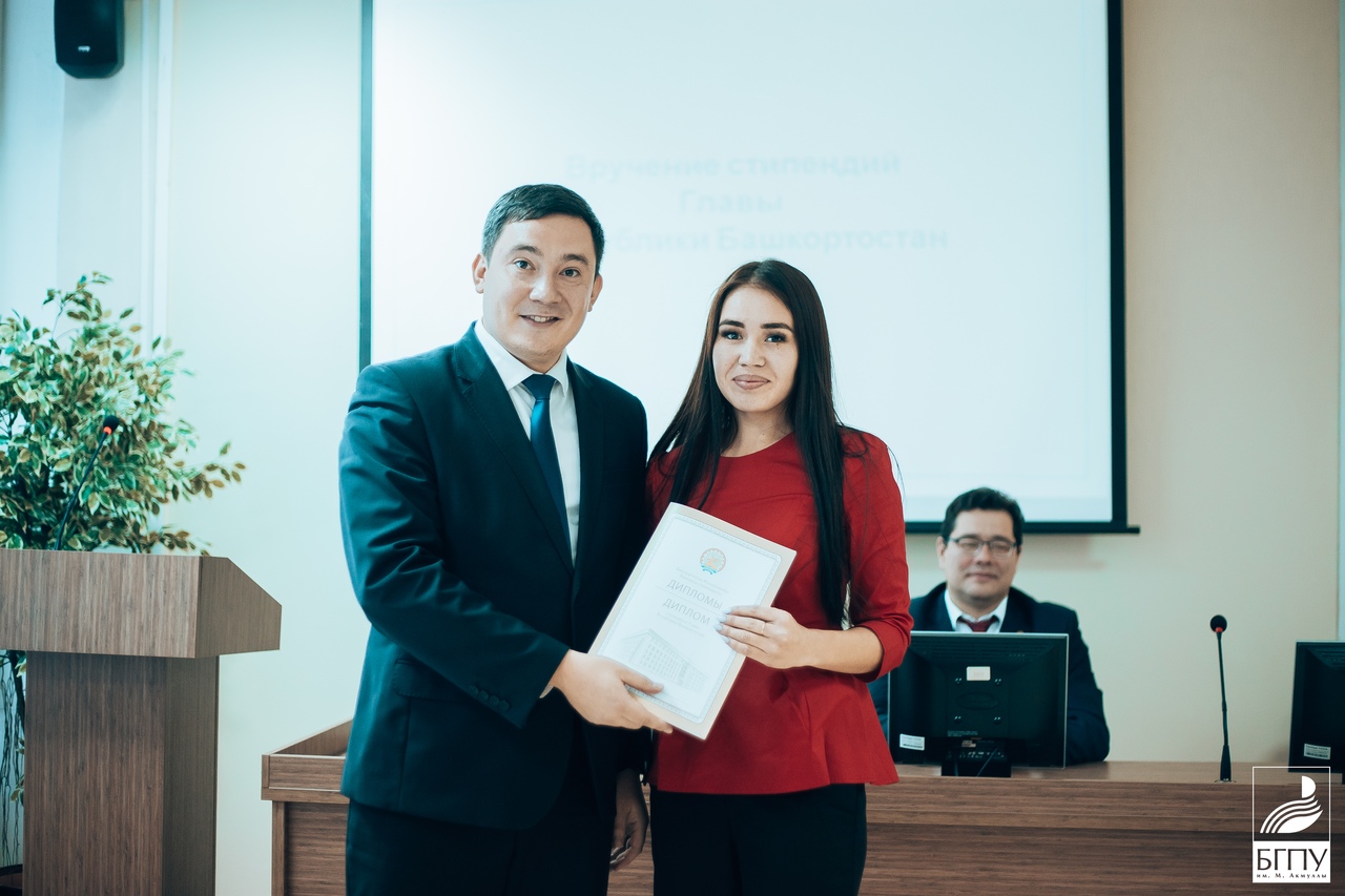 10 октября 2019 г. в Башкирском государственном педагогическом университете состоялось вручение стипендий Президента РФ, Правительства РФ, Главы РБ, стипендий им. А.М. Сулейманова и им. М. Акмуллы студентам университета, а также дипломов выпускникам аспирантуры БГПУ им. М. Акмуллы.