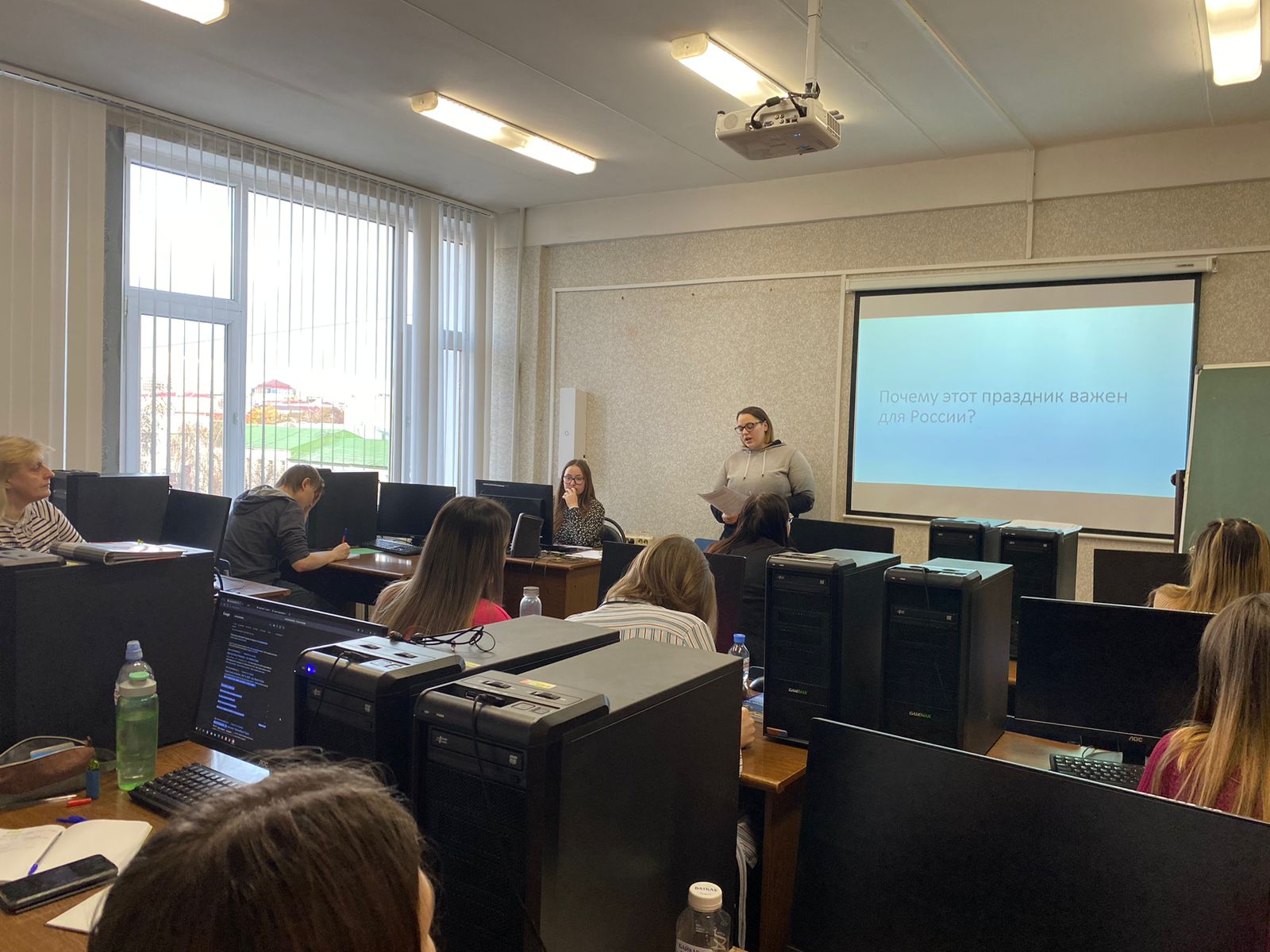 3 ноября 2022 года в группе Б_Ген-41-19 в рамках проекта "Разговоры о важном" была проведена беседа об истории праздника "День народного единства". Этот знаменательный день связан с окончанием Смутного времени на Руси после освобождения Москвы народным ополчением под руководством Кузьмы Минина и Дмитрия Пожарского от польско-литовских интервентов 4 ноября 1612 года. Годовщина подвига русских воинов отмечается и сегодня. Студенты обсудили исторические события и отметили особую значимость праздника — объединение всех жителей России вне зависимости от социального статуса, религиозных взглядов или национальной принадлежности.
