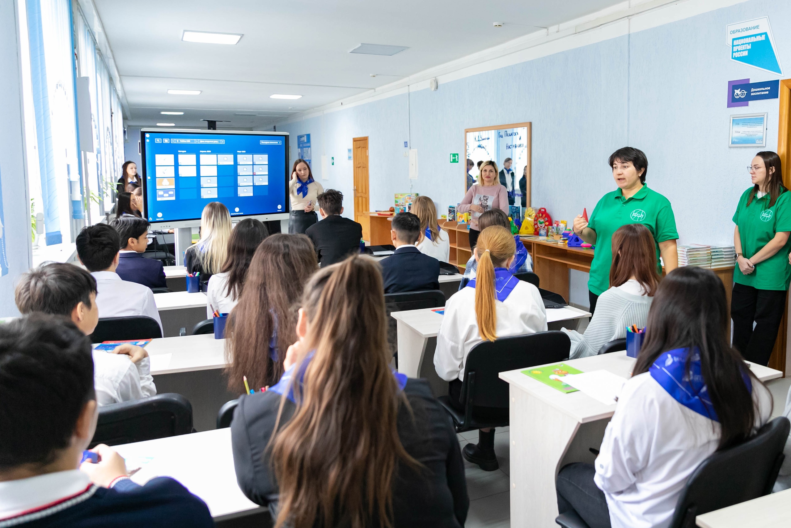 Школьники 9 класса Республиканской полилингвальной многопрофильной гимназии № 2 «СМАРТ»  на кафедре дошкольной педагогики и психологии познакомились с профессией воспитателя. Под руководством преподавателей и студентов они смогли принять самое активное участие в профессиональных пробах: разработать фрагмент занятия с детьми дошкольного возраста по математике «Знакомство с цифрой», разработать элемент интерактивных игр с использованием компьютерных средств, познакомились с возможностями профессионального роста и построения карьеры педагога дошкольного образования.