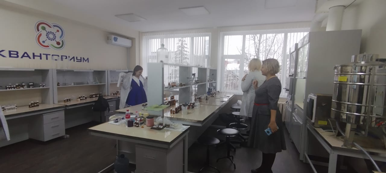 Во второй половине дня школьники получили уникальную возможность ознакомиться с инфраструктурой естественно-географический факультета, а также пообщаться с деканом, преподавателями и студентами. В ходе экскурсии школьники посетили специализированные лаборатории факультета, где получили возможность исследовать микромир под микроскопами и осуществили химический эксперимент.