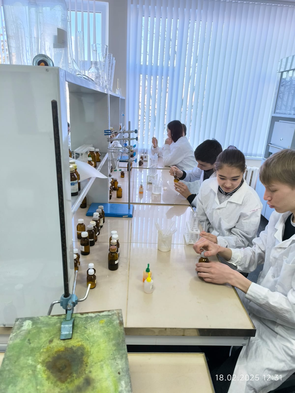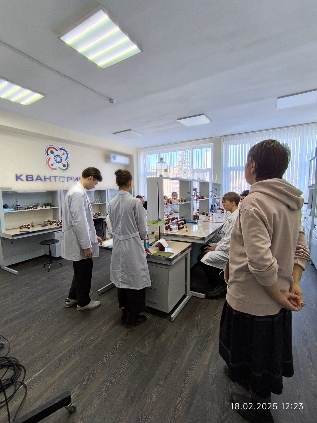 После этого учащиеся отправились в Педагогический технопарк «Кванториум» им. В.А. Садовничего где их ждали доцент кафедры генетики и химии Елена Викторовна Ефимова а также студенты Эмиль Яхин и Зульфия  Халитова. Под их руководством школьники провели ряд экспериментов по химии. Эти практические занятия не только расширили знания учащихся в области естественных наук, но и позволили им почувствовать себя настоящими исследователями.