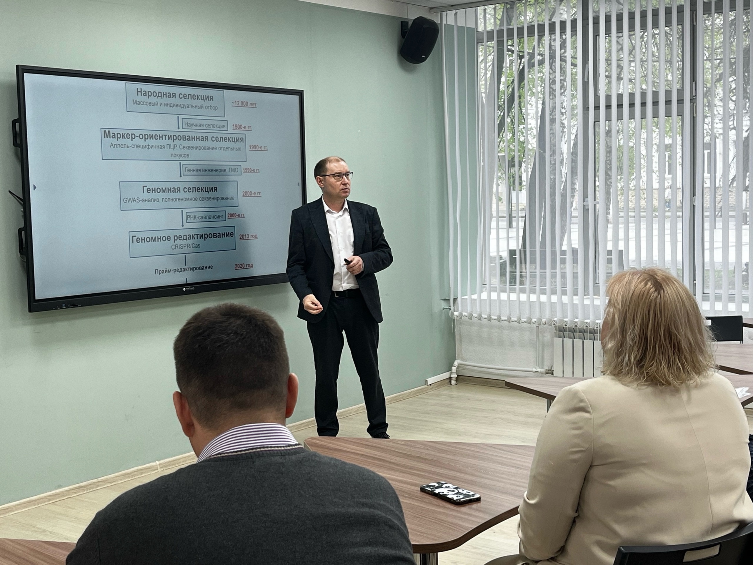 Булат Разяпович подробно рассказал о том, что такое ГМО, как они создаются и какие преимущества могут предоставить. Он объяснил, что многие опасения, связанные с ГМО, основаны на недопонимании процесса и недостоверной информации. Булат Разяпович привел примеры успешного использования ГМО в сельском хозяйстве, которые помогают повысить урожайность и устойчивость растений к заболеваниям и вредителям. Он также отметил, что многочисленные исследования подтверждают безопасность ГМО для здоровья человека и окружающей среды. В завершение своего выступления учёный призвал участников быть открытыми к новым знаниям и подходам в агрономии.