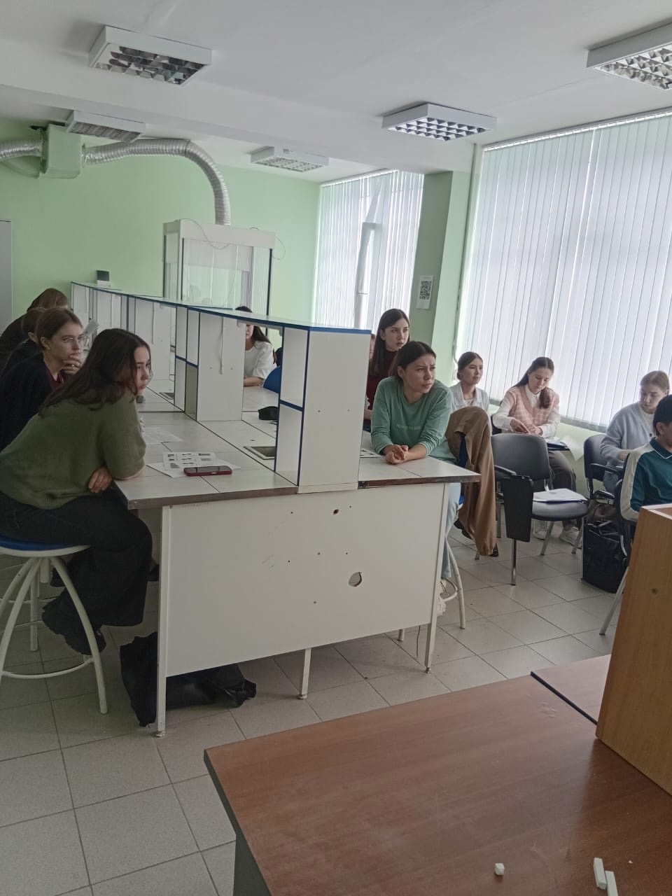 Роль школьников успешно сыграли волонтеры – студенты 1 курса направления «Педагогическое образование», обучающиеся по профилю «Биология и химия». В ходе экзамена они наблюдали демонстрационный эксперимент, решали задачи, просматривали видеоролики, участвовали в мини-викторине и т.д.