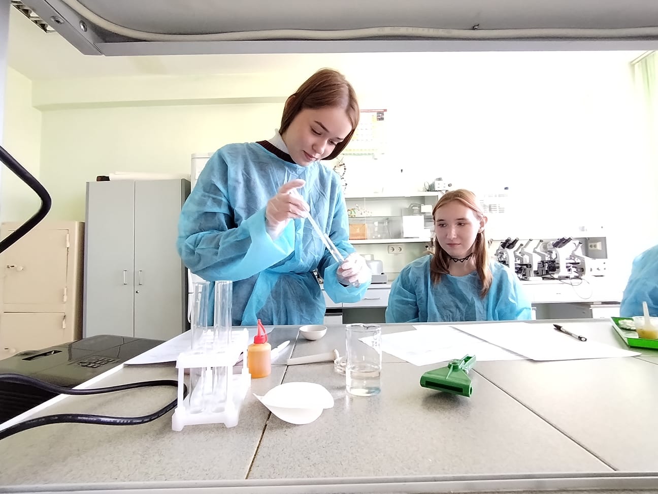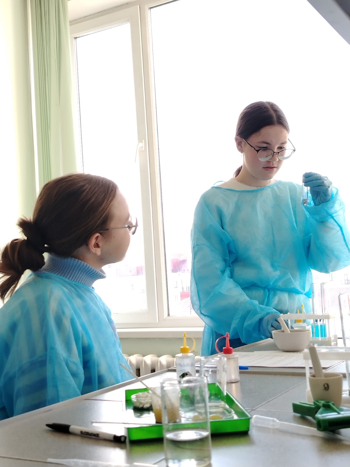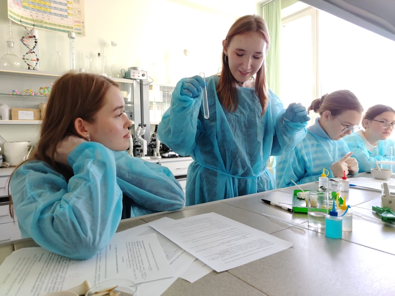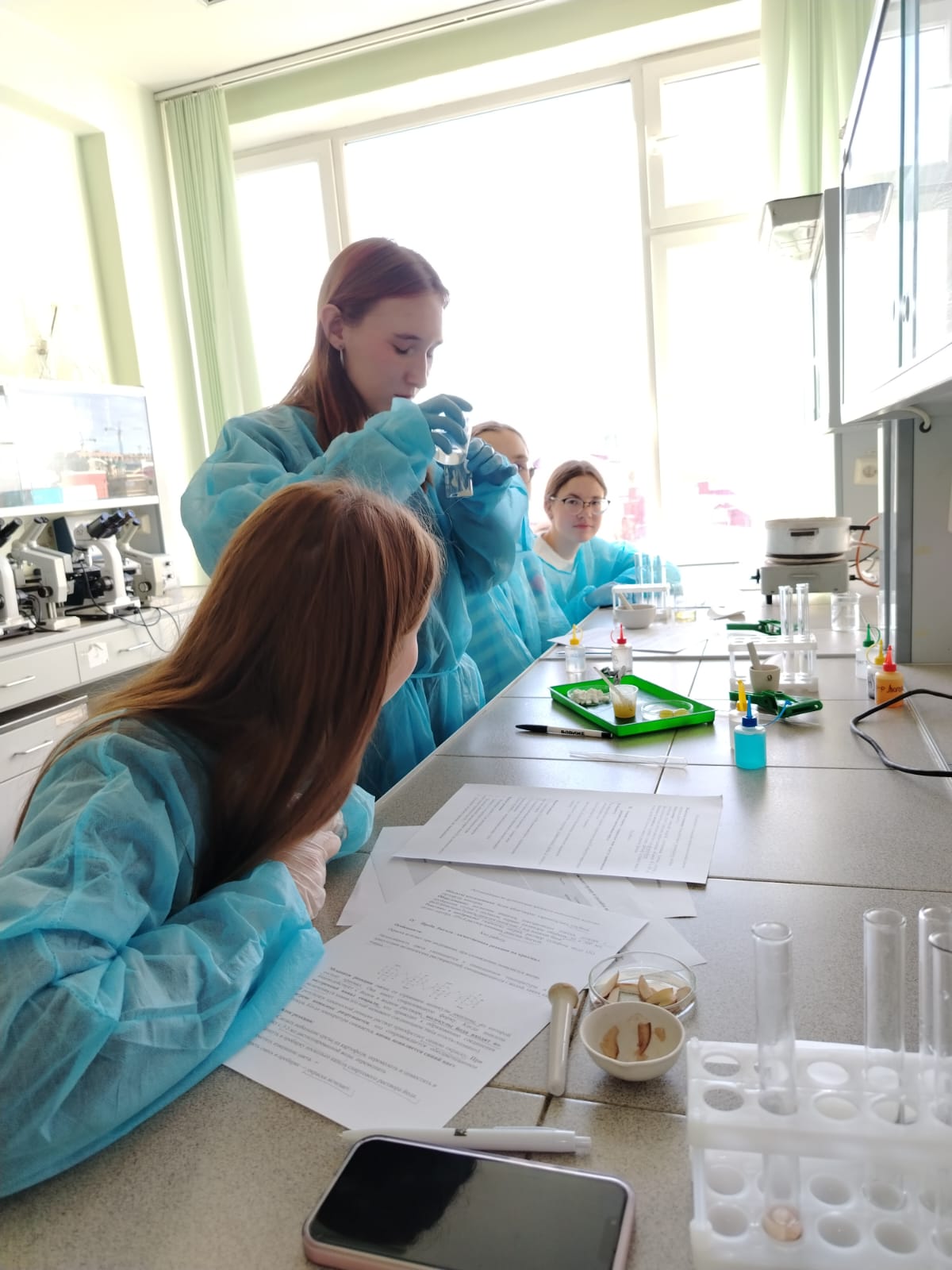 Профессиональная проба дала школьникам возможность освоить методику проведения лабораторных исследований по биохимии. Ученикам было предложено провести захватывающее исследование состава пищевых продуктов, тщательно проанализировать полученные результаты и сделать обоснованные выводы. Занятие прошло в динамичной интерактивной форме: участники разделились на команды, взяв на себя роли преподавателей и ассистентов, где каждый ученик уверенно руководил определенной частью эксперимента, способствуя общему успеху группы.