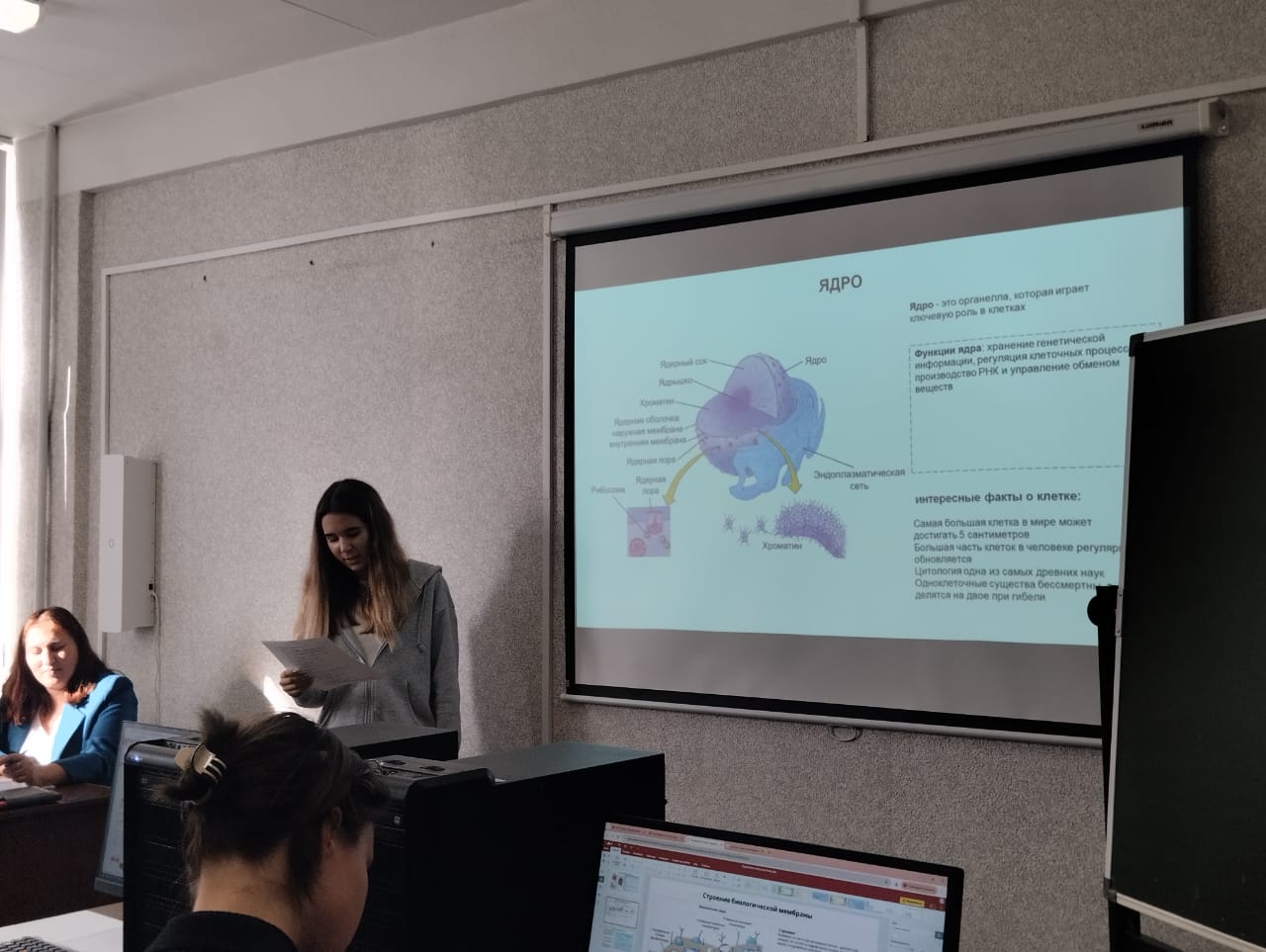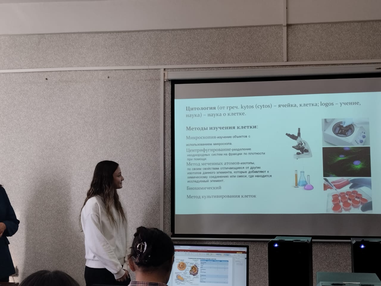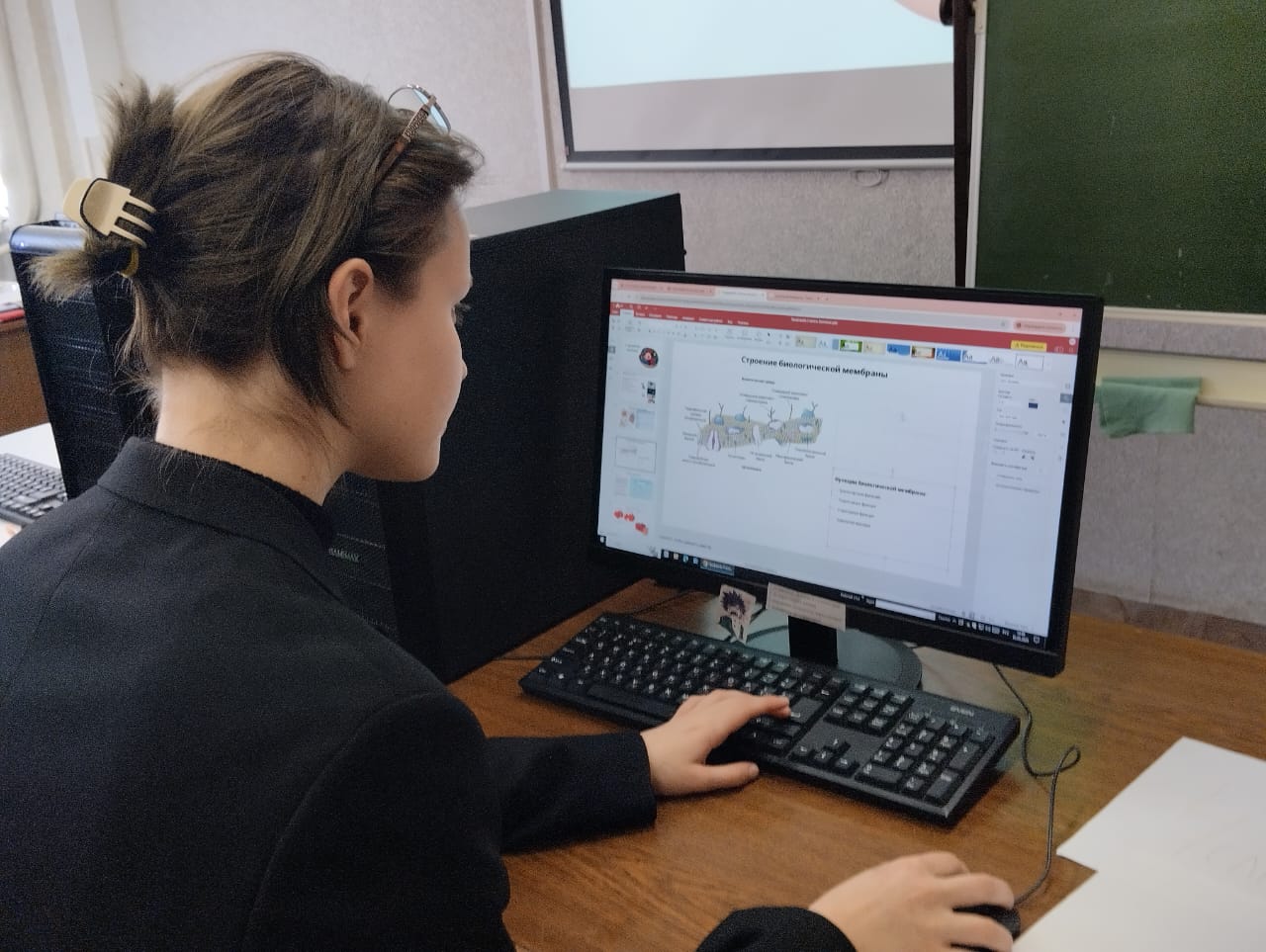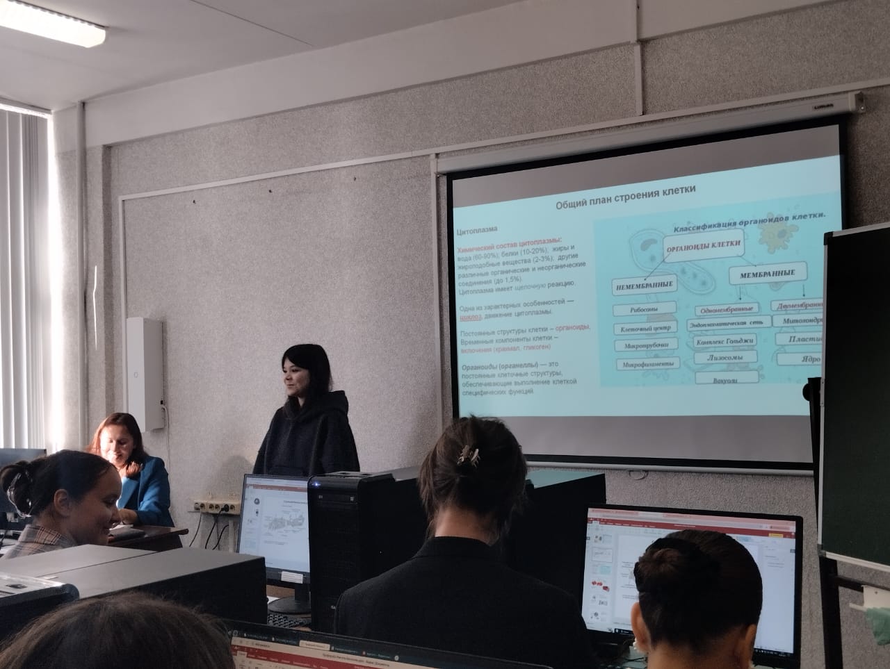 Профессиональная проба позволила школьникам освоить навыки разработки учебных слайдов по теме строения клетки. Каждому участнику был предоставлен базовый слайд с информацией о клетке, который они должны были творчески дополнить новыми фактами и добавить иллюстративное изображение для более глубокого понимания материала. Занятие прошло в интерактивной форме: ребята работали индивидуально, но в атмосфере взаимоподдержки, экспериментируя с визуальными элементами и логической структурой презентаций.