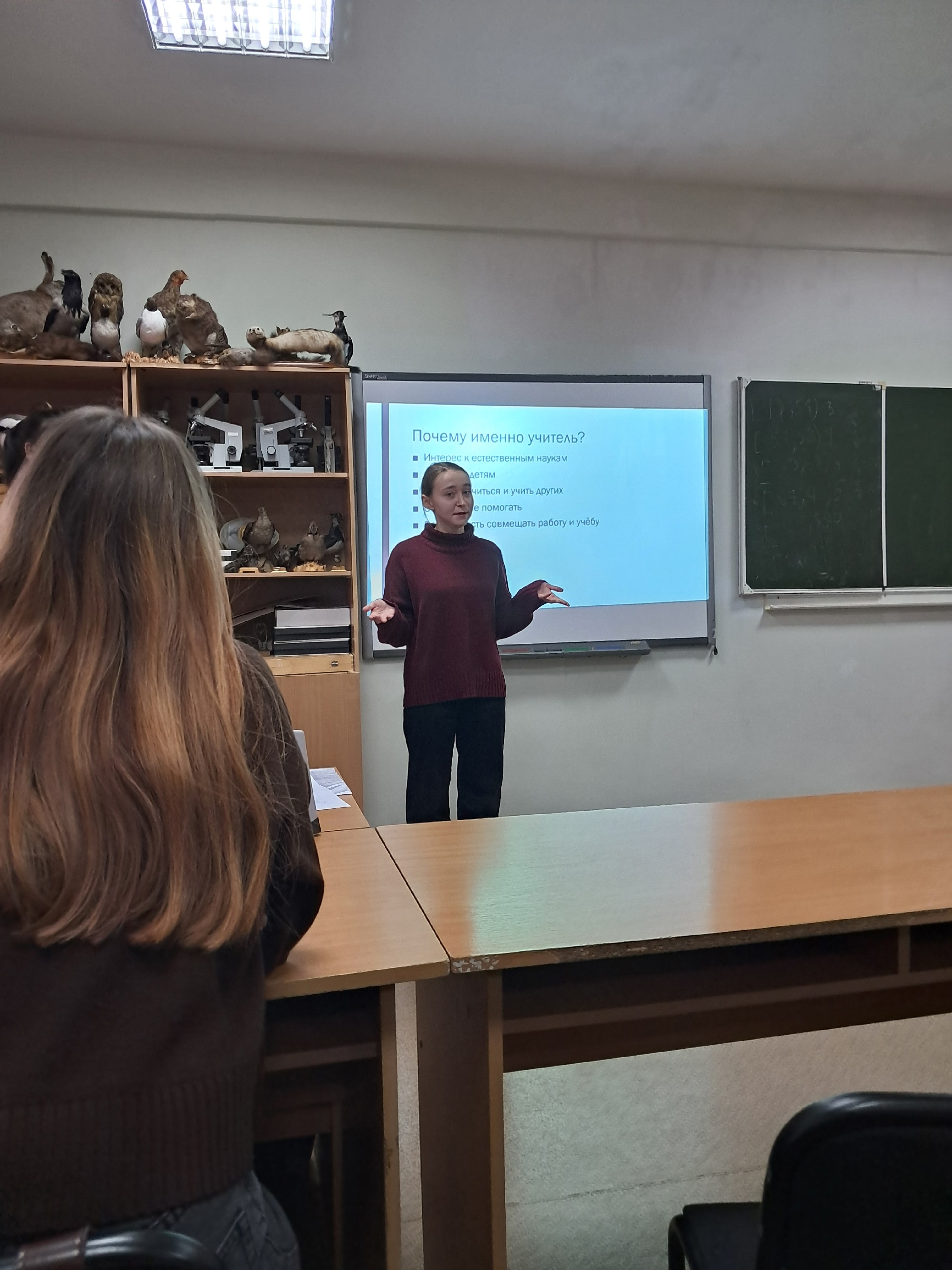 В завершение дня выступила заведующая кафедрой, которая показала вдохновляющее видео с нашими выпускниками прошлых лет. Они поделились своими историями успеха: кто-то работает в фармацевтических компаниях, разрабатывая новые лекарства, другие — в репродуктивных центрах, помогая семьям в вопросах генетики и здоровья. Эти примеры продемонстрировали, как образование на кафедре открывает двери в динамичную индустрию и способствует реализации амбиций.
