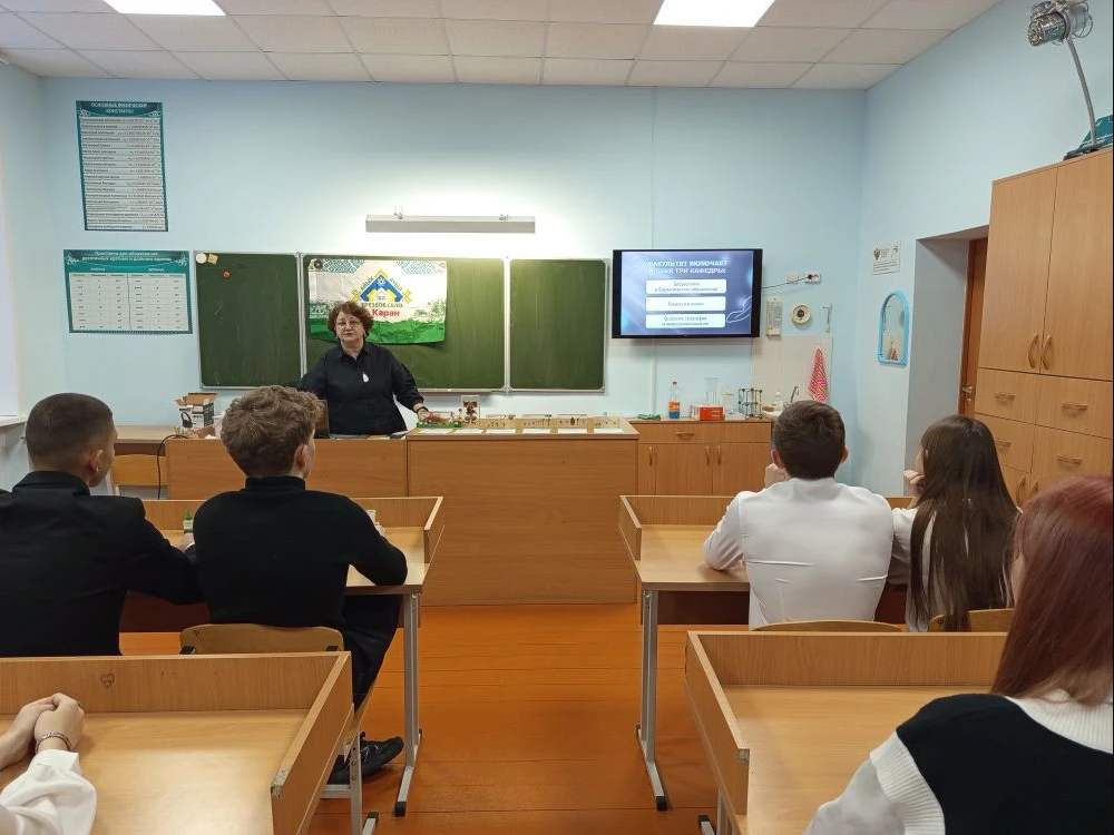 12 февраля в Карановской средней общеобразовательной школе Буздякского района прошла профориентационная встреча, центральной частью которой стал мастер-класс по генетике, организованный преподавателем кафедры генетики и химии Еленой Александровной Кантюковой.