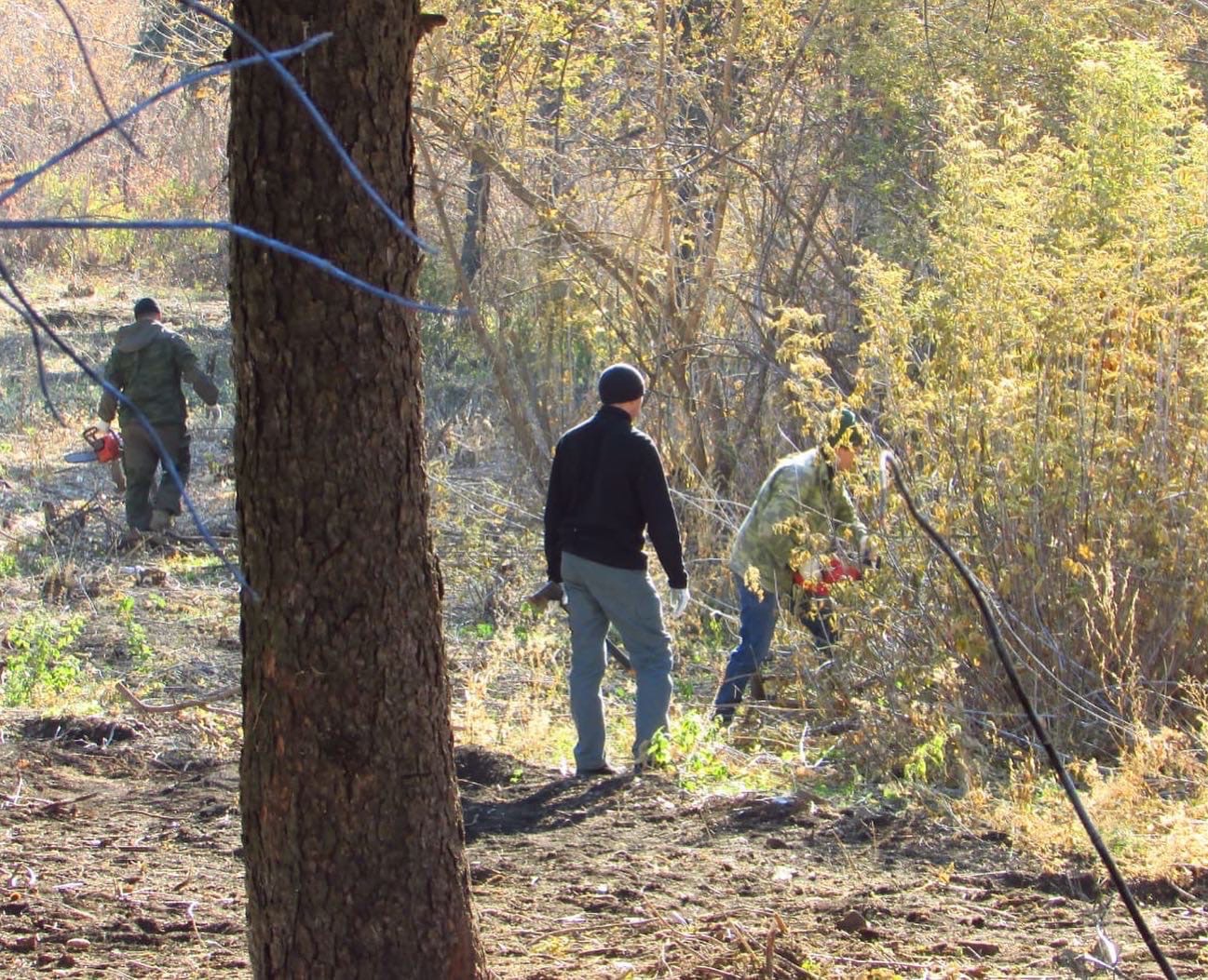 Около 35-ти экземпляров вековых голубых елей сохранены, но сильно заросли американским кленом, который  быстро растет и вытесняет другие деревья, может образовывать многоярусные заросли, с которыми трудно бороться. Клён ясенелистный, или клен американский (лат. Acer negúndo), родом из Северной Америки - это один из самых распространенных древесных сорняков, опасный инвазионный (агрессивный инородный) вид. Одна из мер борьбы - механическое удаление (вырубка) этих деревьев. Именно такой фронт работы и предстоял участникам субботника.