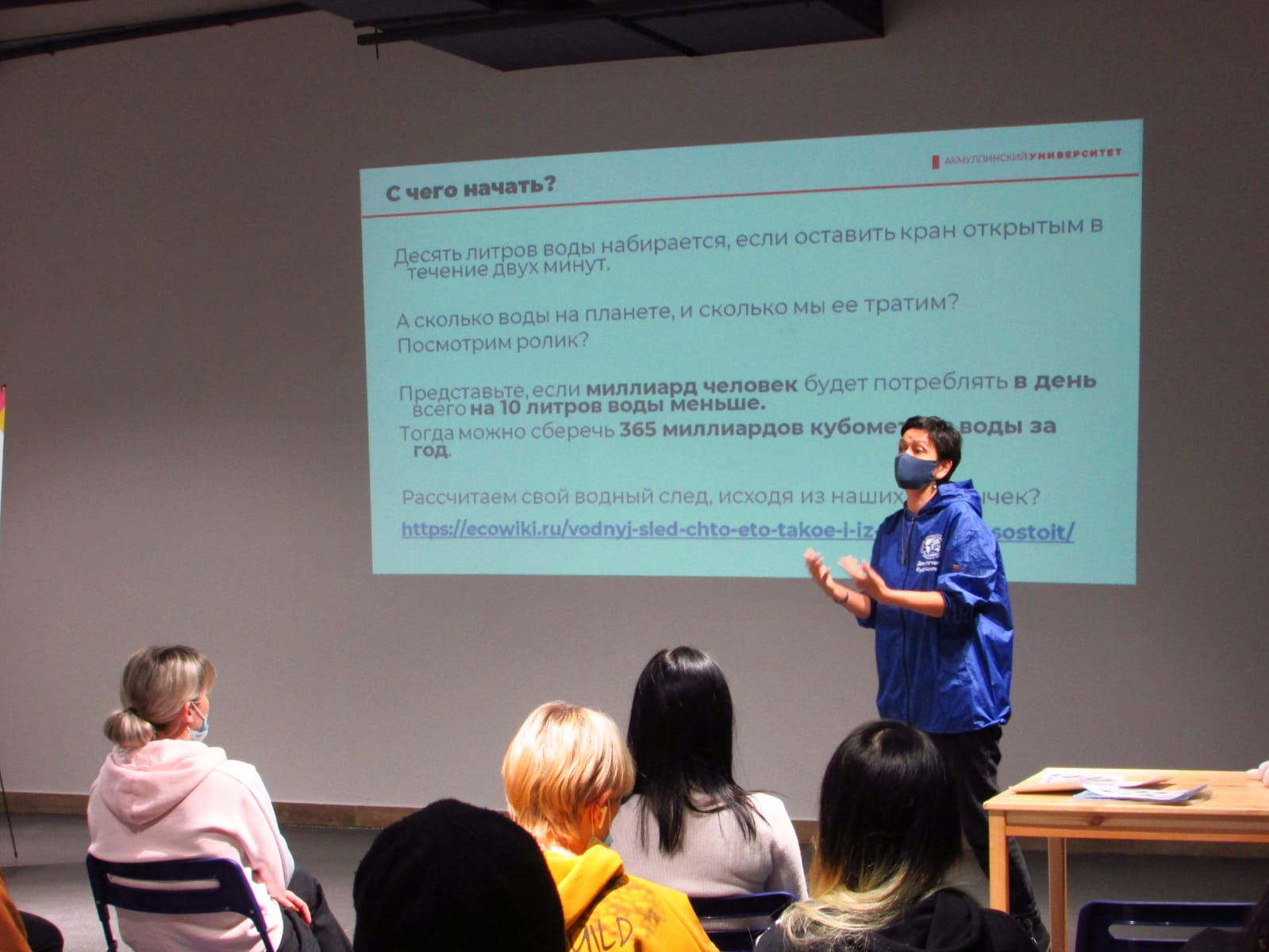 В рамках подготовки волонтеров и координаторов проекта «Мой след на Земле», направленного на формирование экологических привычек и экологического мышления, кафедра экологии, географии и природопользования БГПУ им.М.Акмуллы была приглашена к проведению совместного мероприятия Объединения подростковых клубов «Дети плюс» (Уфа) и АНО по поддержке экологических инициатив населения «Чистая Уфа». Темой обсуждения выбрали проблему сбережения чистой воды.