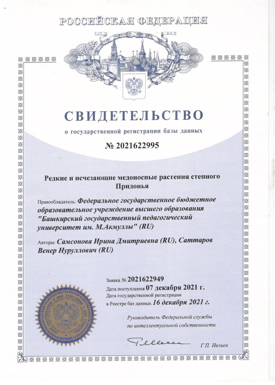 Преподавателями естественно-географического факультета получено свидетельство о государственной регистрации базы данных «Редкие и исчезающие медоносные растения степного Придонья».