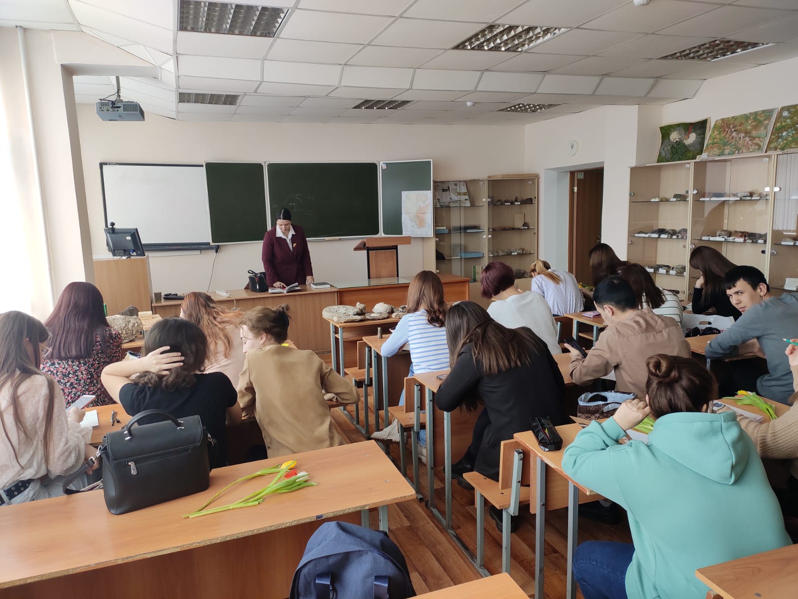 На примере данной коллекции в рамках своей педагогической практики Елена Юрьевна научила студентов отличать колонии кораллов от мшанок, головоногих моллюсков аммонитов от наутилусов, брахиопод – плеченогих морских беспозвоночных животных - от двустворок, окаменелости морских лилий криноидей от головоногих моллюсков белемнитов. Обучающиеся с большим интересом включились в работу по разбору палеонтологических образцов.