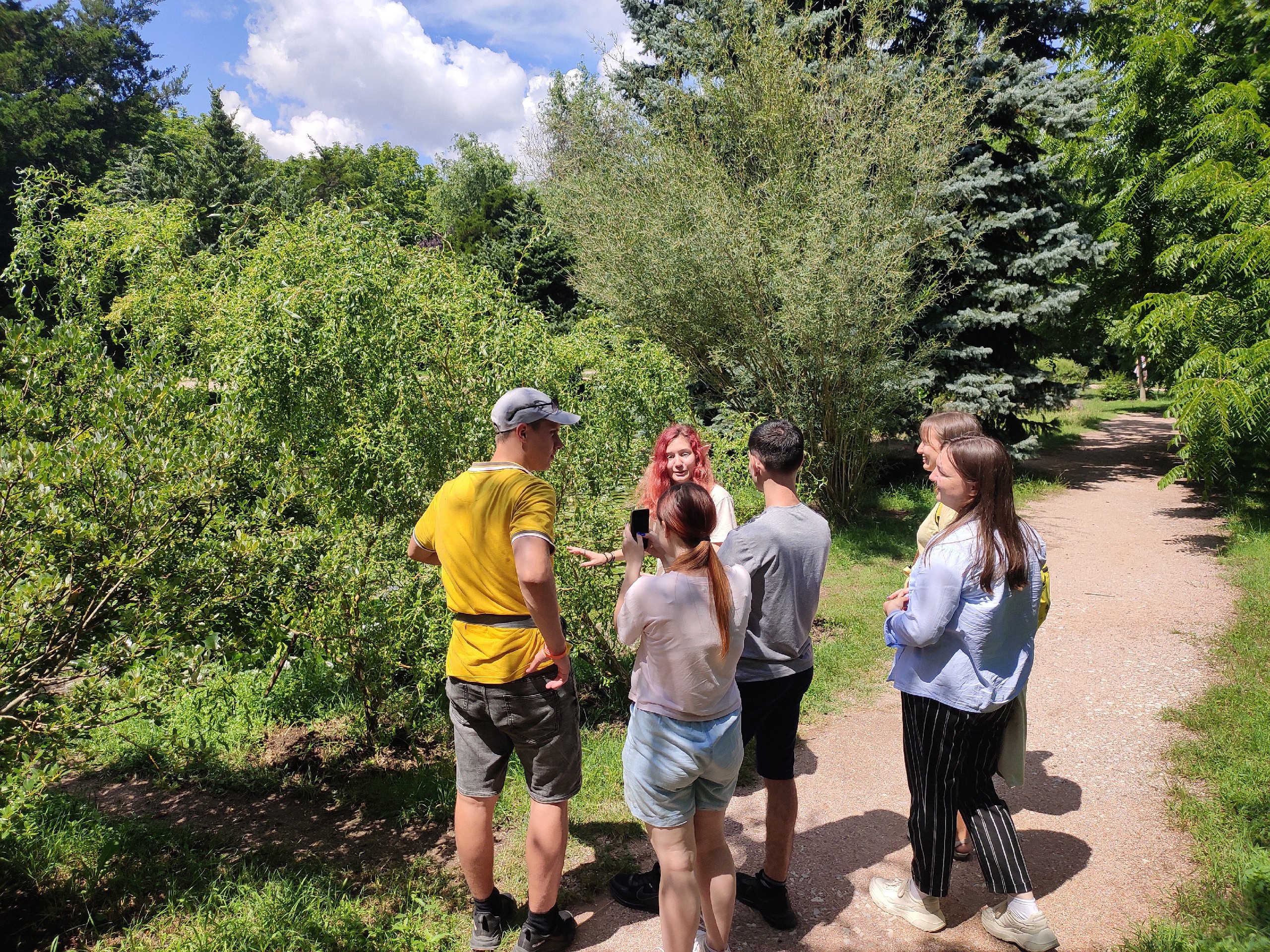 Одним из участников проекта является преподаватель кафедры экологии, географии и природопользования, член Молодежного клуба РГО "ГеоЛОГ" Роман Халитов.  В первый день для участников была проведена экскурсия в ботаническом саду имени Н. В. Багрова (г. Симферополь). Затем экскурсию в Никитском ботаническом саду провел старший научный сотрудник лаборатории флоры и растительности, заведующий лаборатории природных экосистем Никифоров Александр Ростиславович.