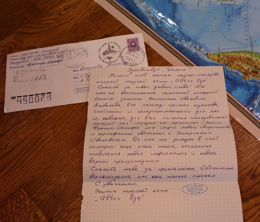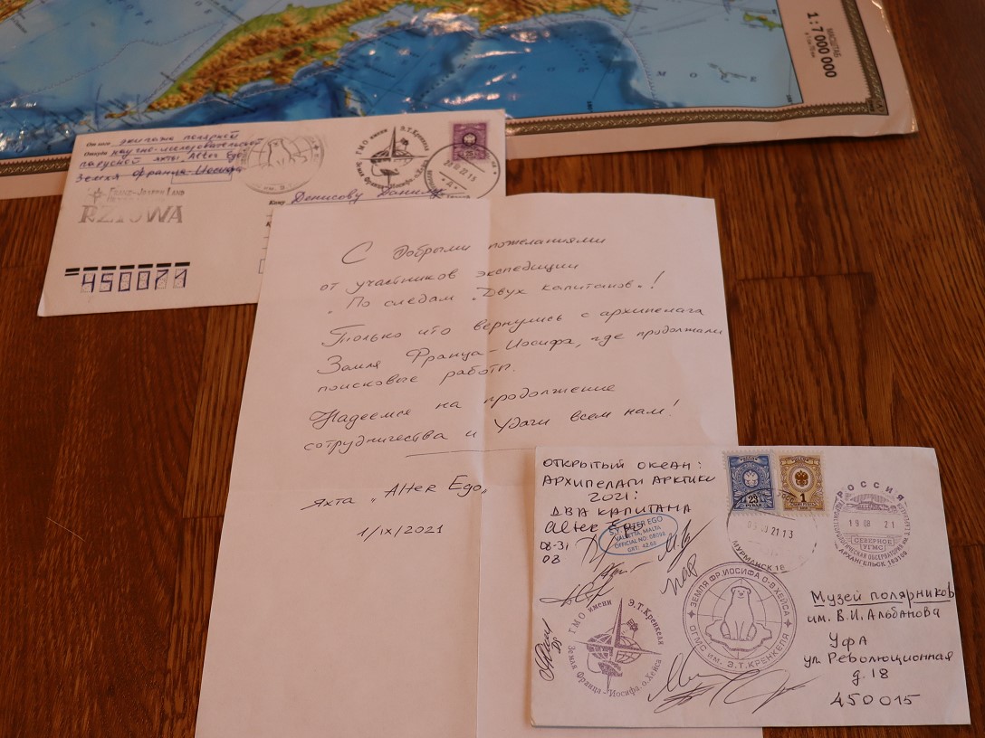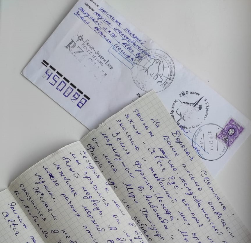 Спешим поделиться радостью! В Ночь географии-2022, организованной естественно-географическим факультетом в рамках международной акции Русского географического общества на площадке БГПУ им.М.Акмуллы гостям праздника было предложено (в том числе) написать письмо полярникам - участникам полярных экспедиций, исследователям полярных районов. Почему им? Потому, что нам всем очень интересна тема развития Российской Арктики, и потому что наши большие друзья - "Музей полярников имени Валериана Альбанова". Письма с обратными адресами, запечатанные самими авторами, были собраны и через общего друга - полярника Евгения Ферштера, члена экспедиции «По следам двух капитанов» - переданы в Мурманск. Чтобы ответ на них дали люди, работающие за полярным кругом - настоящие полярники. К нашей просьбе все участники этого проекта отнеслись с большой ответственностью - письма попали на ледокол "Ленин", прошли Северным морским путем и получили кучу уникальных штемпелей. В том числе - с самого северного почтового отделения России, расположенного на архипелаге Земля Франца Иосифа, тот, что с белым медведем. И вот на днях ответы полярников стали приходить адресатам! А по штемпелям можно изучать географию нашей страны.