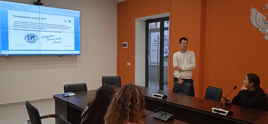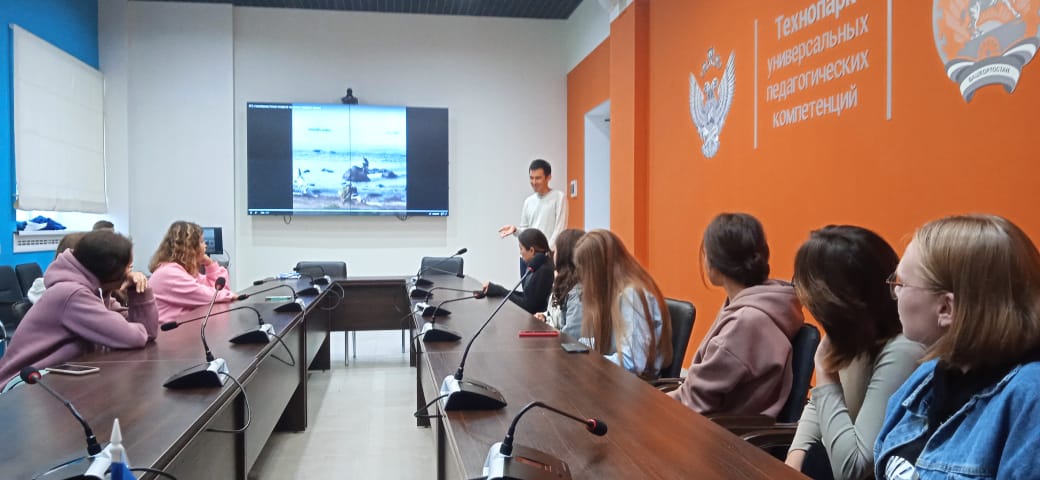 В рамках Всероссийской просветительской акции "Поделись своим знанием" преподаватель кафедры экологии, географии и природопользования кандидат биологических наук Роман Халитов рассказал первокурсникам естественно-географического факультета о своем опыте участия в летних Молодежных слётах, организованных Русским географическим обществом в 2022 году.  В июле месяце его заявка получила подтверждение на участие в проекте "Заповедное дело РГО" в Никитском ботаническом саду Крыма, а в августе он стал одним из 20 участников, приглашенных со всей России, экспедиционного слета молодежных клубов РГО на острове Итуруп (Сахалинская область). Что входило в программу слетов, что удалось посмотреть, изучить, какой научный вклад внести в развитие этих уникальных территорий - об этом прошла беседа с ребятами, выбравшими своей профессией работу географа и эколога.