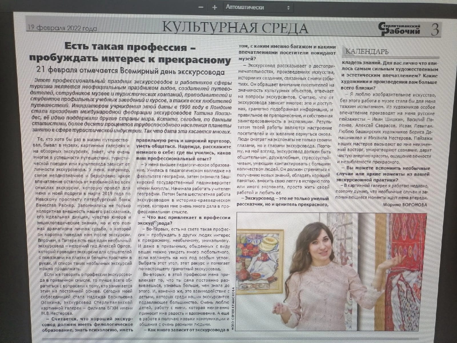 Интервью с Надеждой Осокиной от Марины Вороновой опубликовано 21/02/2022 в газете «Стерлитамакский рабочий» и доступно по ссылке: https://srgazeta.ru/articles/novosti-sterlitamaka/202..
